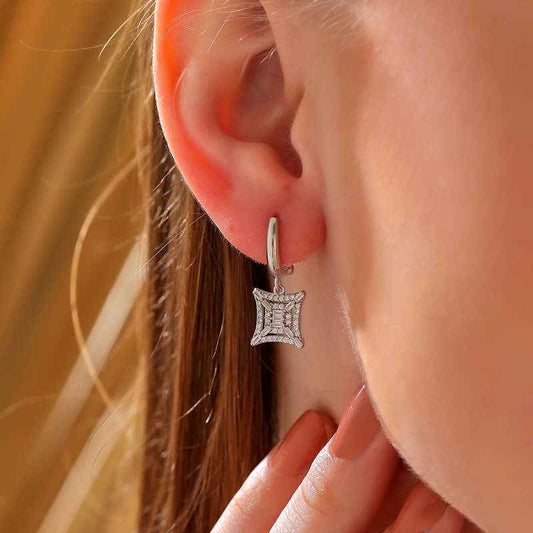Square Zircon Stone Women's Silver Earrings