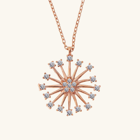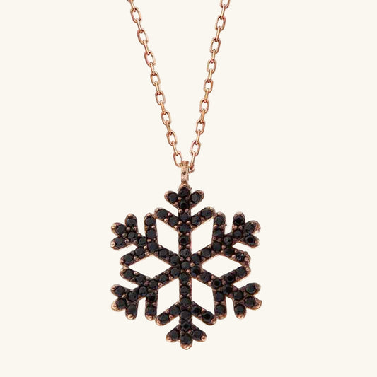 Rose Plated Black Stone Snowflake Women's Silver Necklace