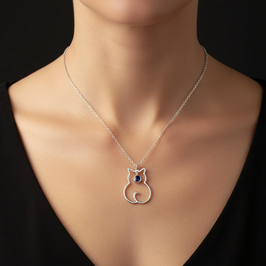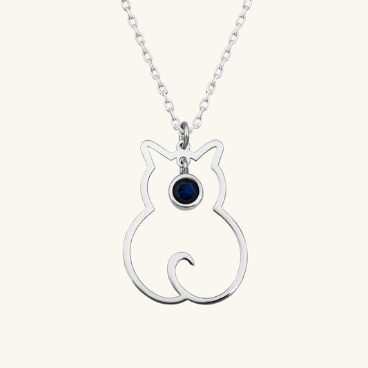 September Birthstone Cat Women's Silver Necklace
