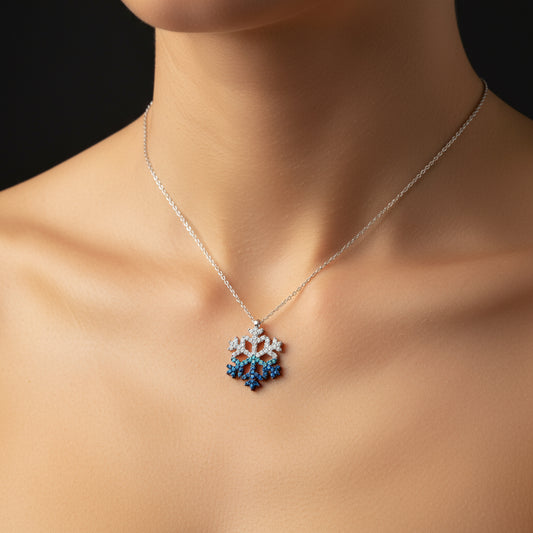 Blue Stone Snowflake Women's Silver Necklace
