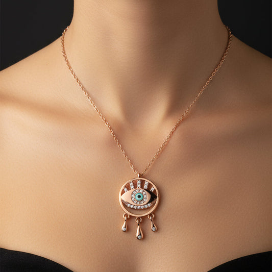 Rose Gold Plated Evil Eye Women's Silver Necklace