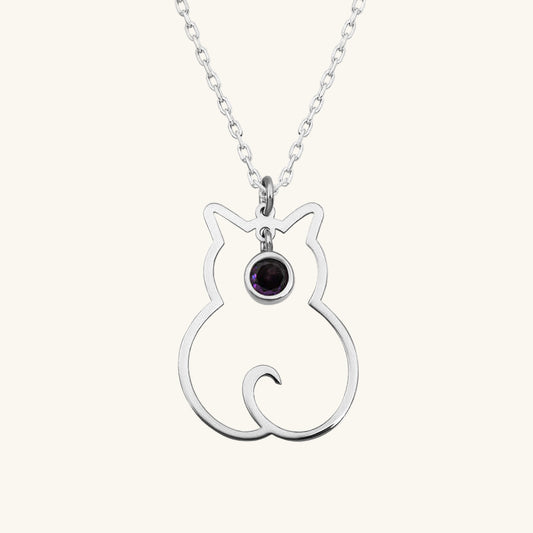 February Birthstone Cat Women's Silver Necklace