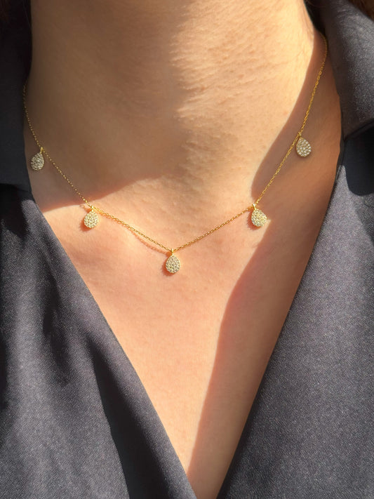 5 weiße, marineblaue, türkisfarbene Tropfen-Silberkette