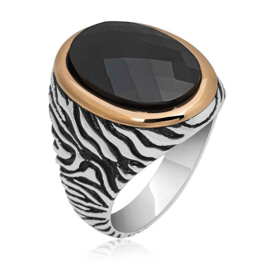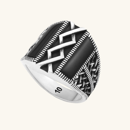 Herren-Silberring mit Onyx-Steinmuster
