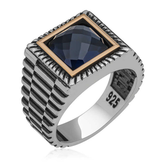 Ovaler Herren-Silberring mit blauem Zirkonstein