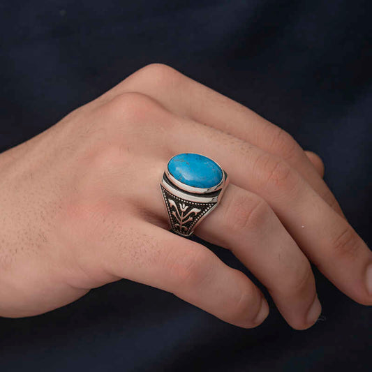 Zirkon Türkis Stein Oval Herren Silber Ring