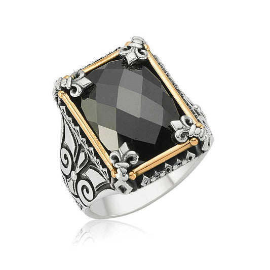 Herren-Silberring mit schwarzem Schliffstein