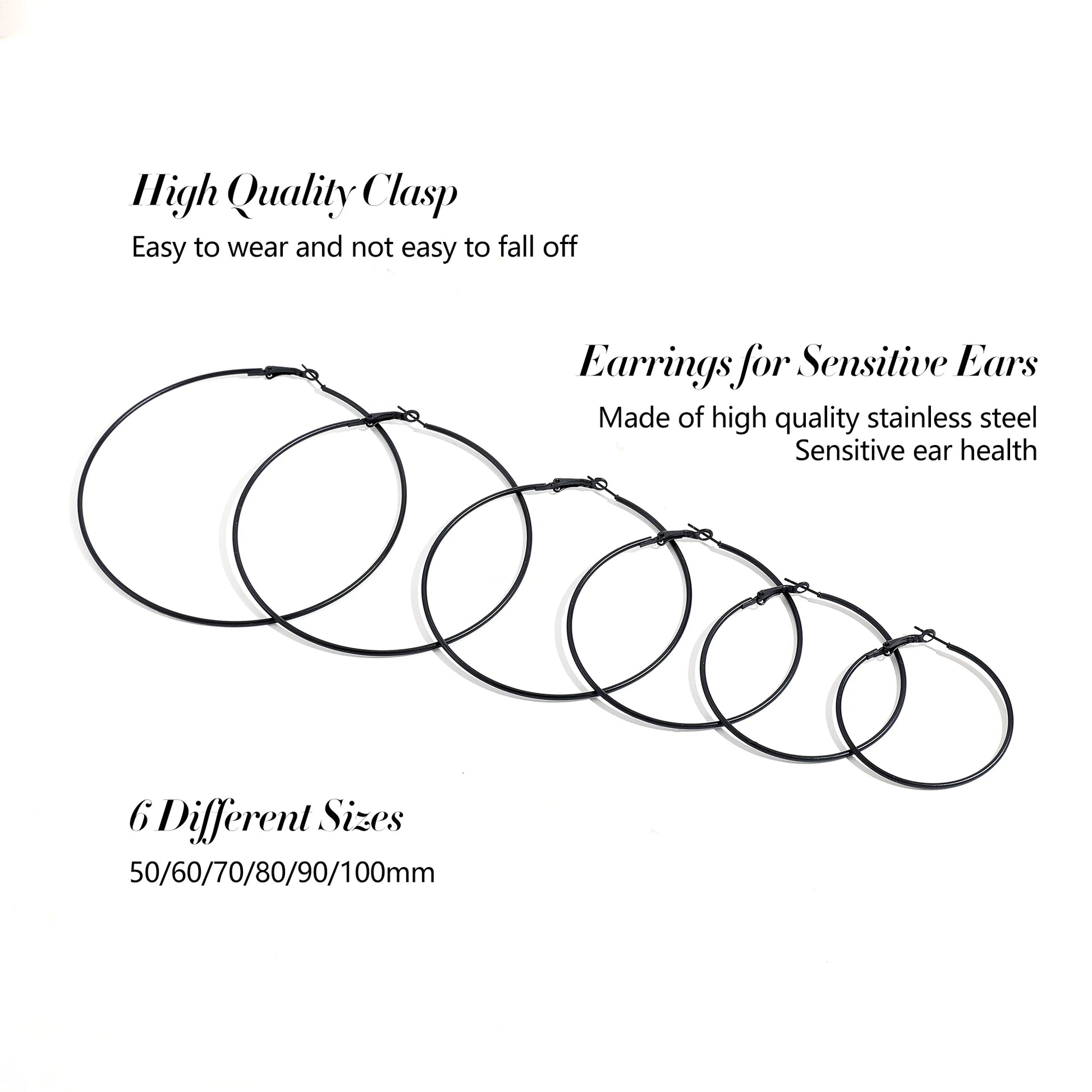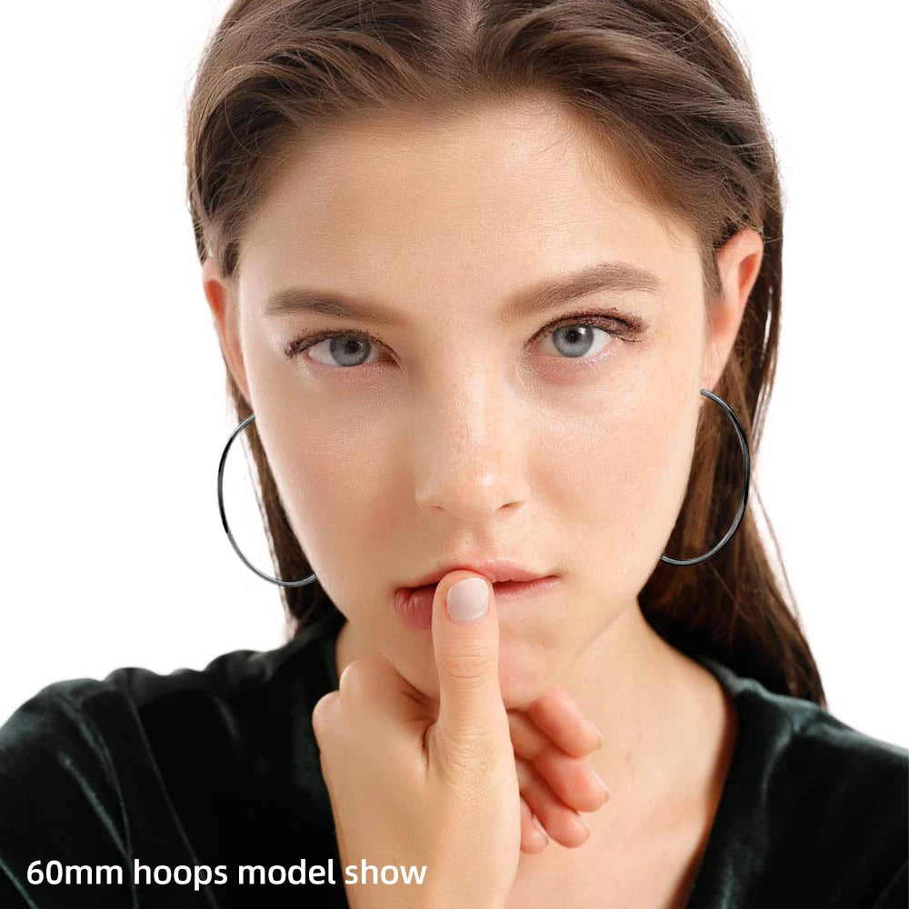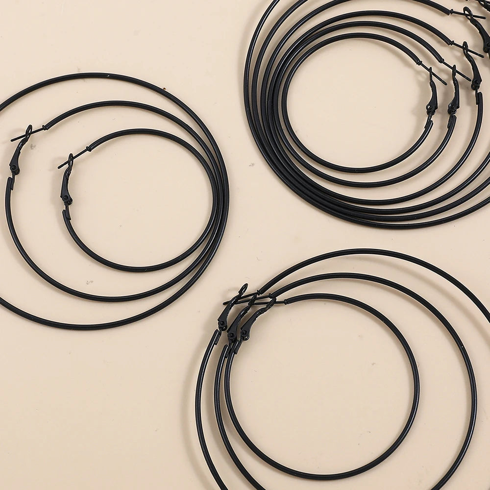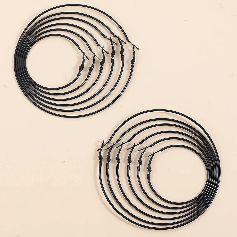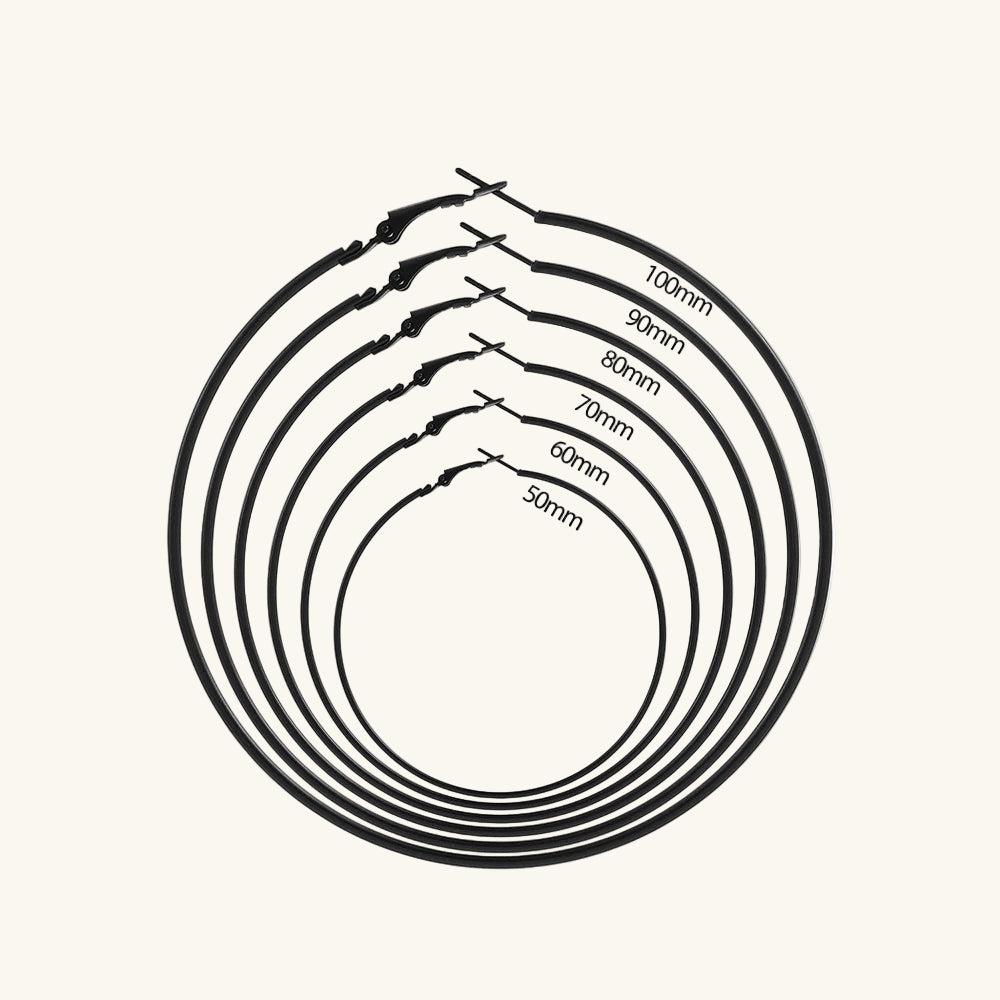 Setzen Sie ein starkes Statement mit diesen schwarzen Creolen im Punk-Gothic-Stil . Diese Kollektion ist das unverzichtbare Accessoire für alle, die einen dunklen, minimalistischen und dennoch übertriebenen Stil bevorzugen. Mit fünf verfügbaren Größen haben Sie die volle Kontrolle über Ihren Look und können zwischen dezenten Creolen und dramatisch glatten Statement-Ohrringen wählen.