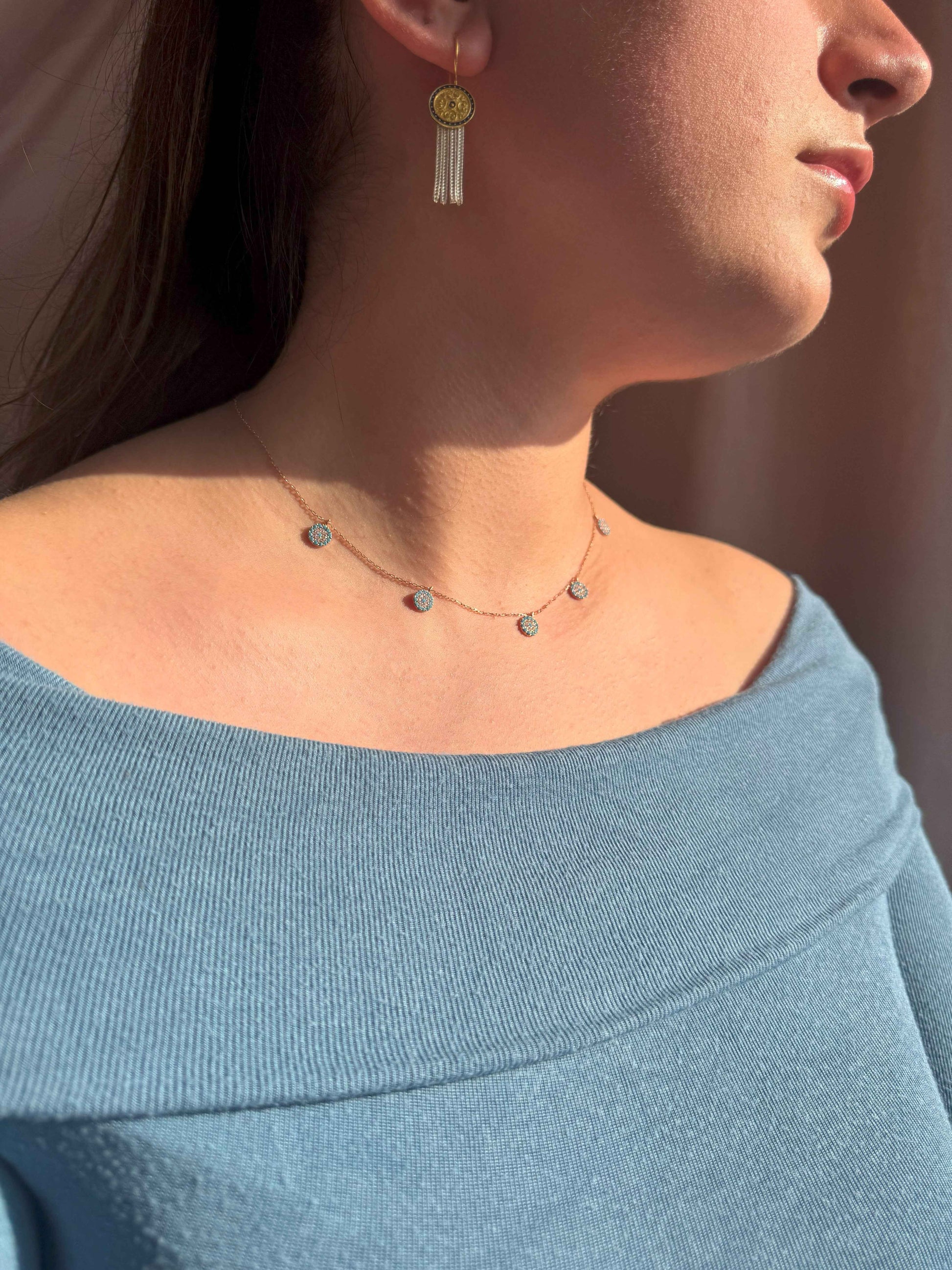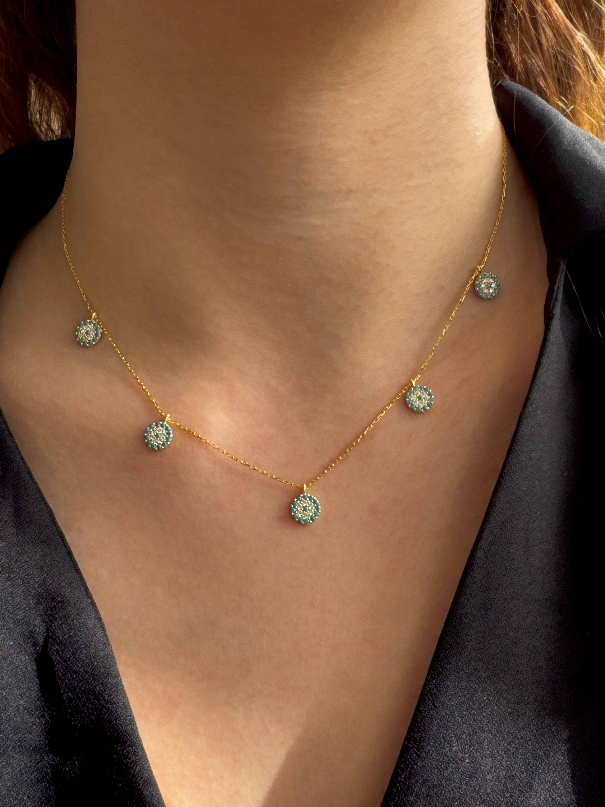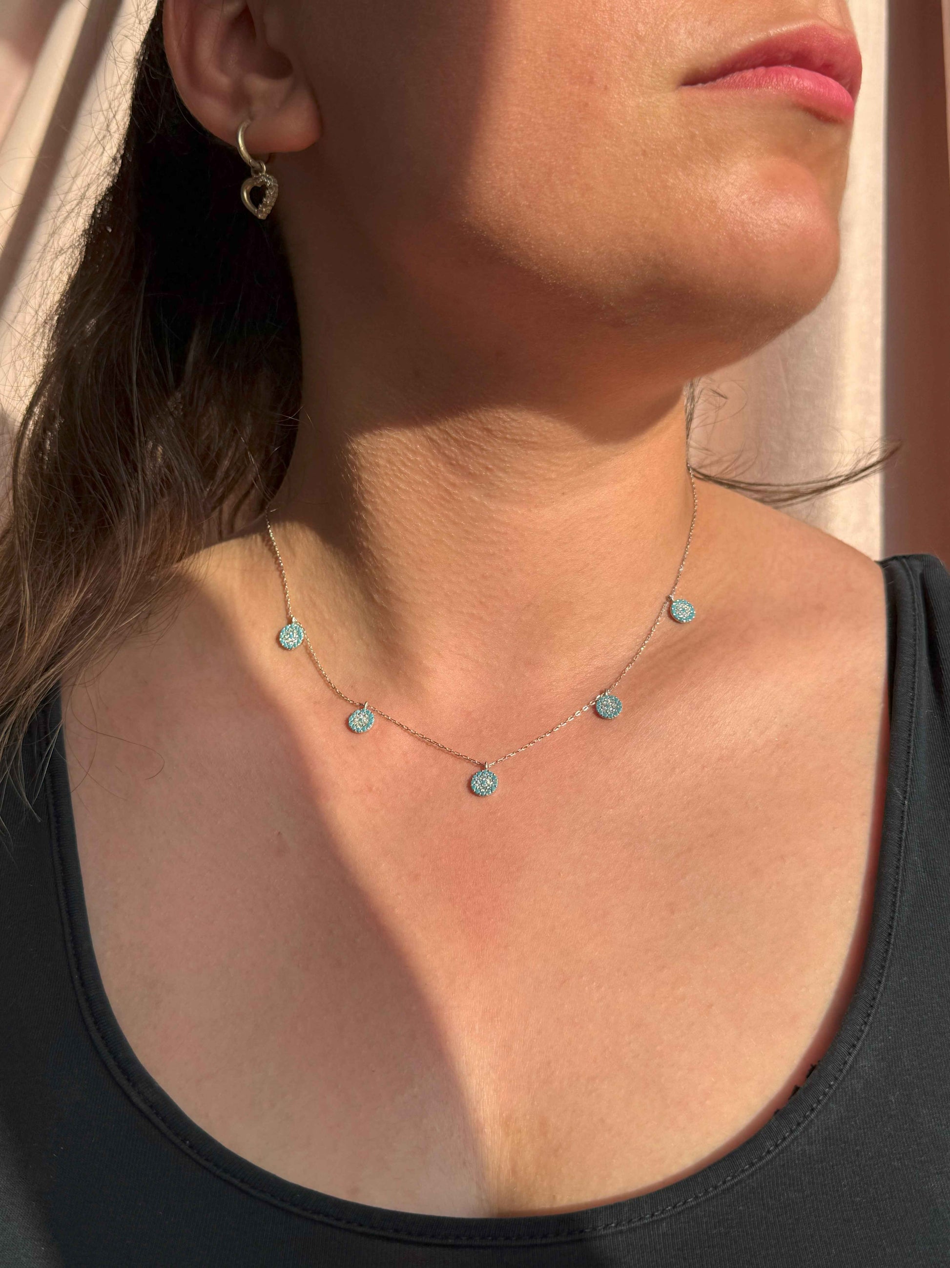 5 Türkis Weiß Kreis Silber Halskette