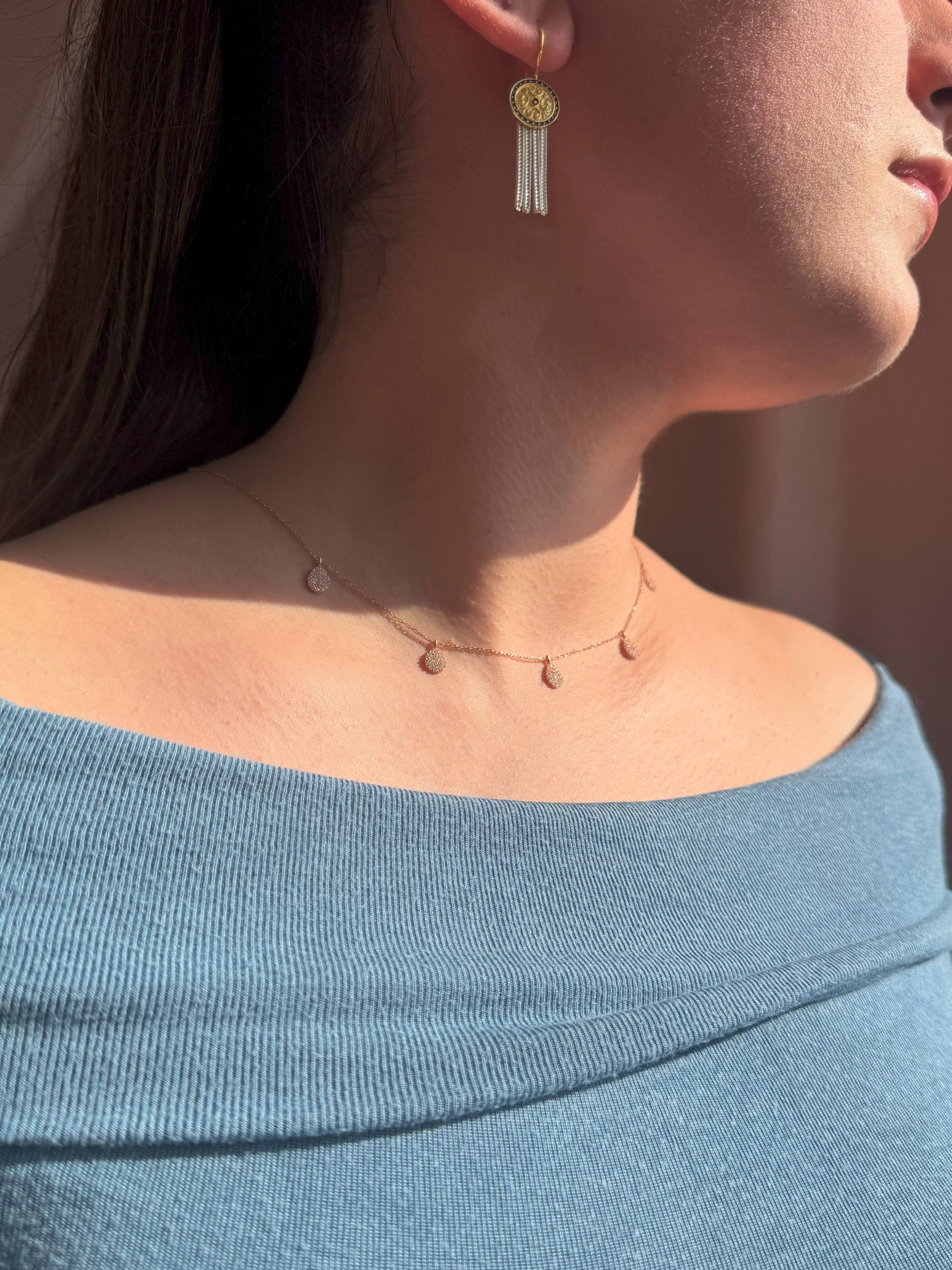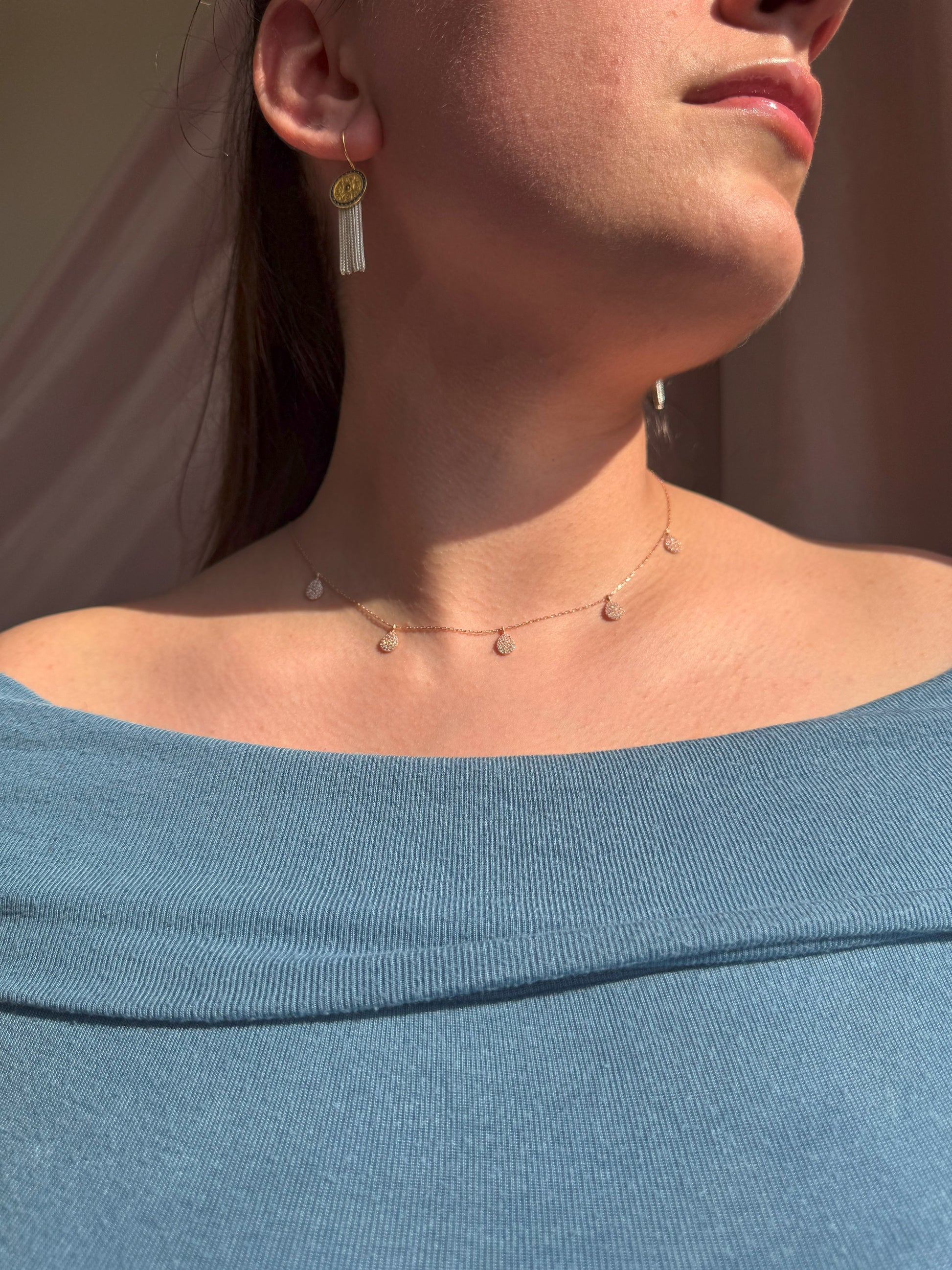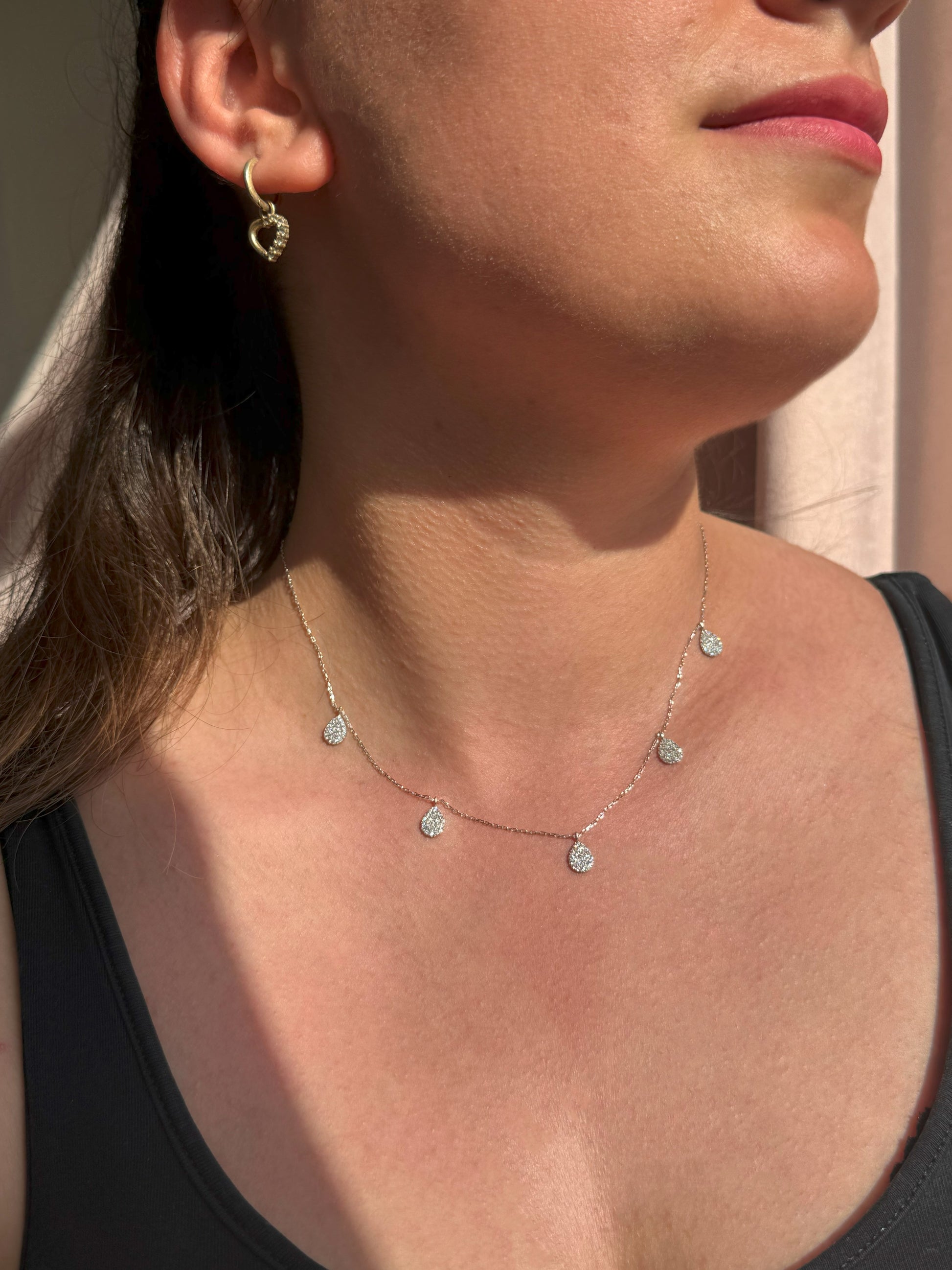 5 weiße Tropfen Silber Halskette