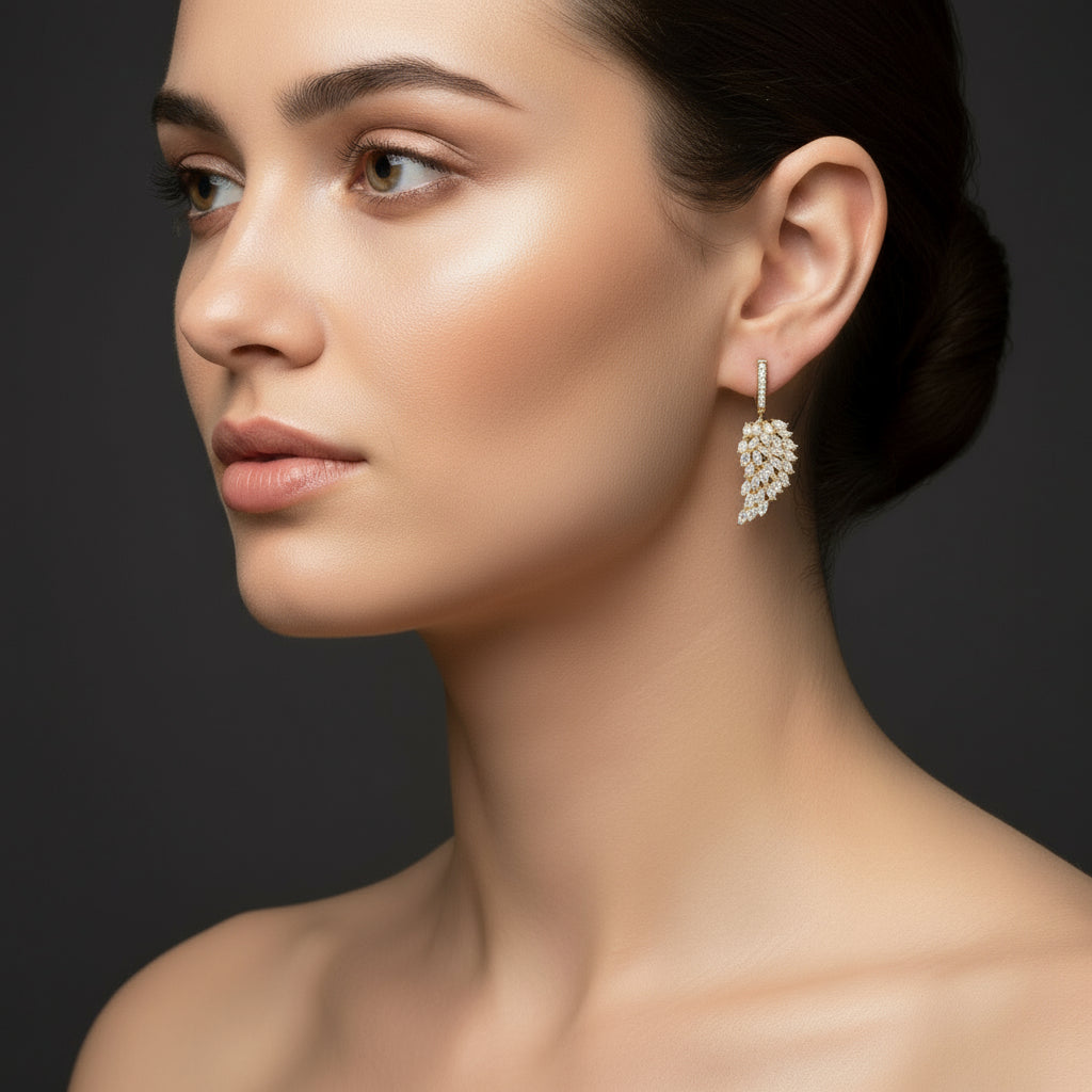 Mit diesen funkelnden silbernen Engelsflügel-Ohrringen, verziert mit Zirkonsteinen, können Sie den Look Ihres flügellosen Engels vervollständigen und ihm Freude bereiten. Wenn Sie sagen: „Meine Liebe ist ein Engel“, dann sind diese Engelsflügel-Ohrringe perfekt für Ihre Liebste. Die silbernen Engelsflügel-Ohrringe sind ein passendes Geschenk nicht nur für die Liebe Ihres Lebens, sondern auch für Ihre Mutter oder Schwester. Erfreuen Sie Ihre Liebsten mit einem Geschenk, das eines Engels würdig ist. Diese Ohrringe aus 925er Sterlingsilber mit Goldbeschichtung behalten lange ihren Glanz und sind anlaufbeständig. Die Steine auf den silbernen Engelsflügel-Ohrringen sind Zirkon. Alle unsere Ringmodelle sind vollständig handgefertigt. Aufgrund von Silber und Edelsteinen kann das angegebene Durchschnittsgewicht um ±10 % abweichen.