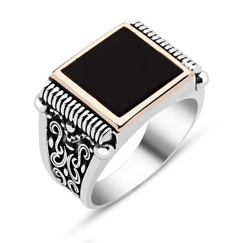 Schwarzer Stein Herren Silberring