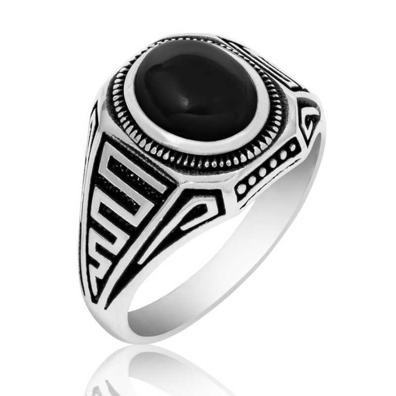Schwarzer Stein Herren Silberring
