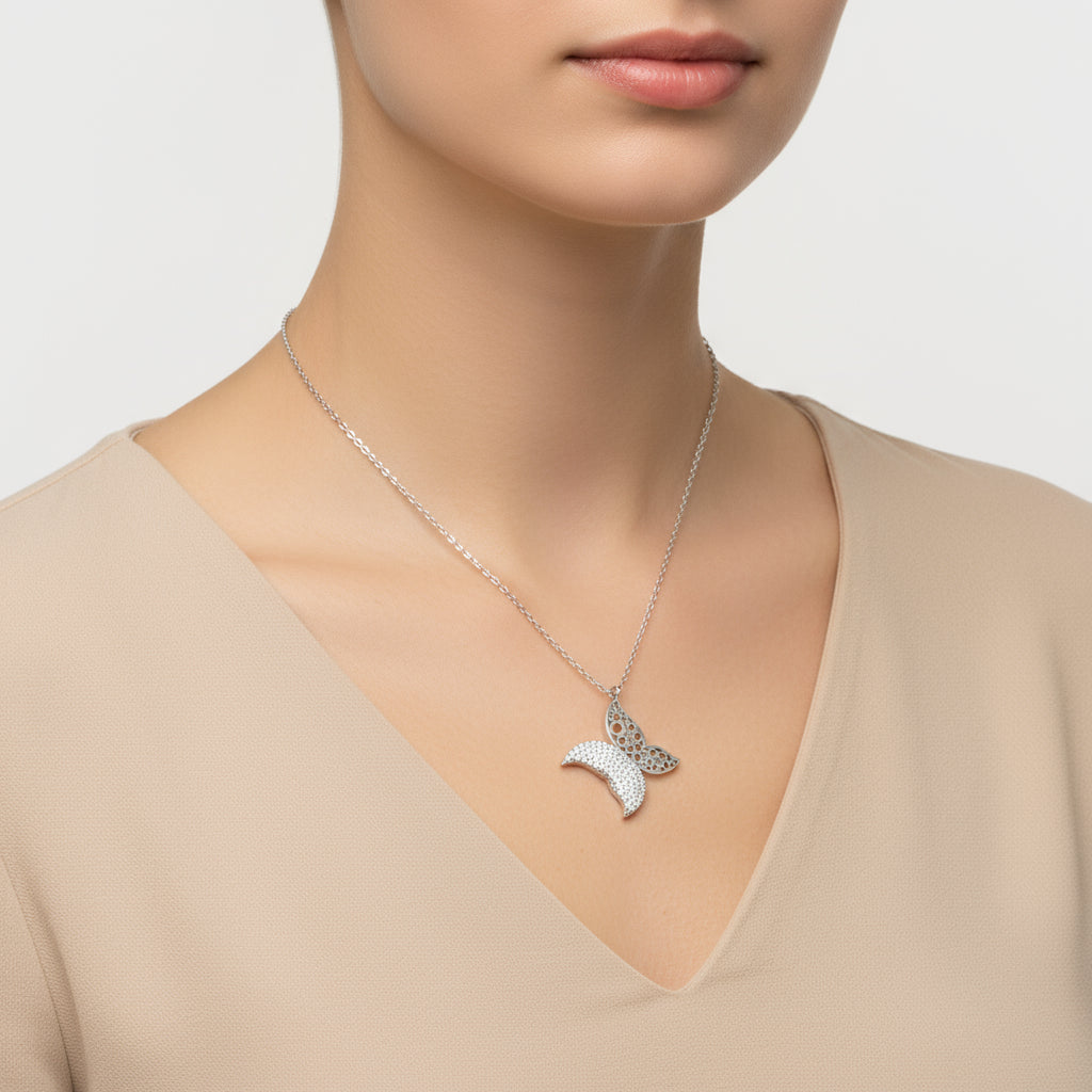 Der Schmetterling ist eines der beliebtesten Motive für Frauen. Er erinnert seine Bewundererinnen an das Mysterium der Natur und den Reichtum der menschlichen Vorstellungskraft. Schmetterlinge symbolisieren Freiheit, Unschuld und Reinheit und sind Ausdruck unverfälschter Liebe und Leidenschaft. Dieser Schmetterlingsanhänger für Damen, den Sie und Ihre Lieben gerne tragen werden, ist eines der schönsten Geschenke für einen besonderen Menschen. Der Anhänger ist aus 925er Sterlingsilber gefertigt und mit einer Rhodinierung versehen. Rhodinierte silberne Damenanhänger behalten lange ihren Glanz und verzögern das Anlaufen. Die Silberkette hat eine durchschnittliche Länge von 45 cm. Wie alle silbernen Damenanhänger ist auch dieses Schmetterlingsmodell handgefertigt. Aufgrund von Silber und Edelsteinen kann das angegebene durchschnittliche Produktgewicht um ±10 % abweichen.