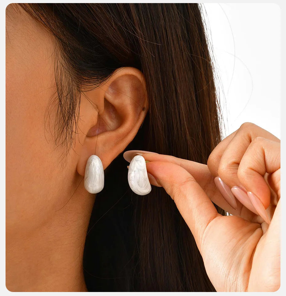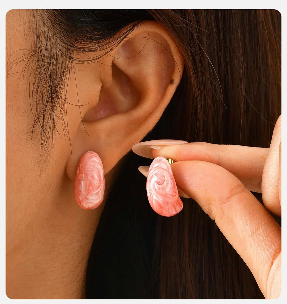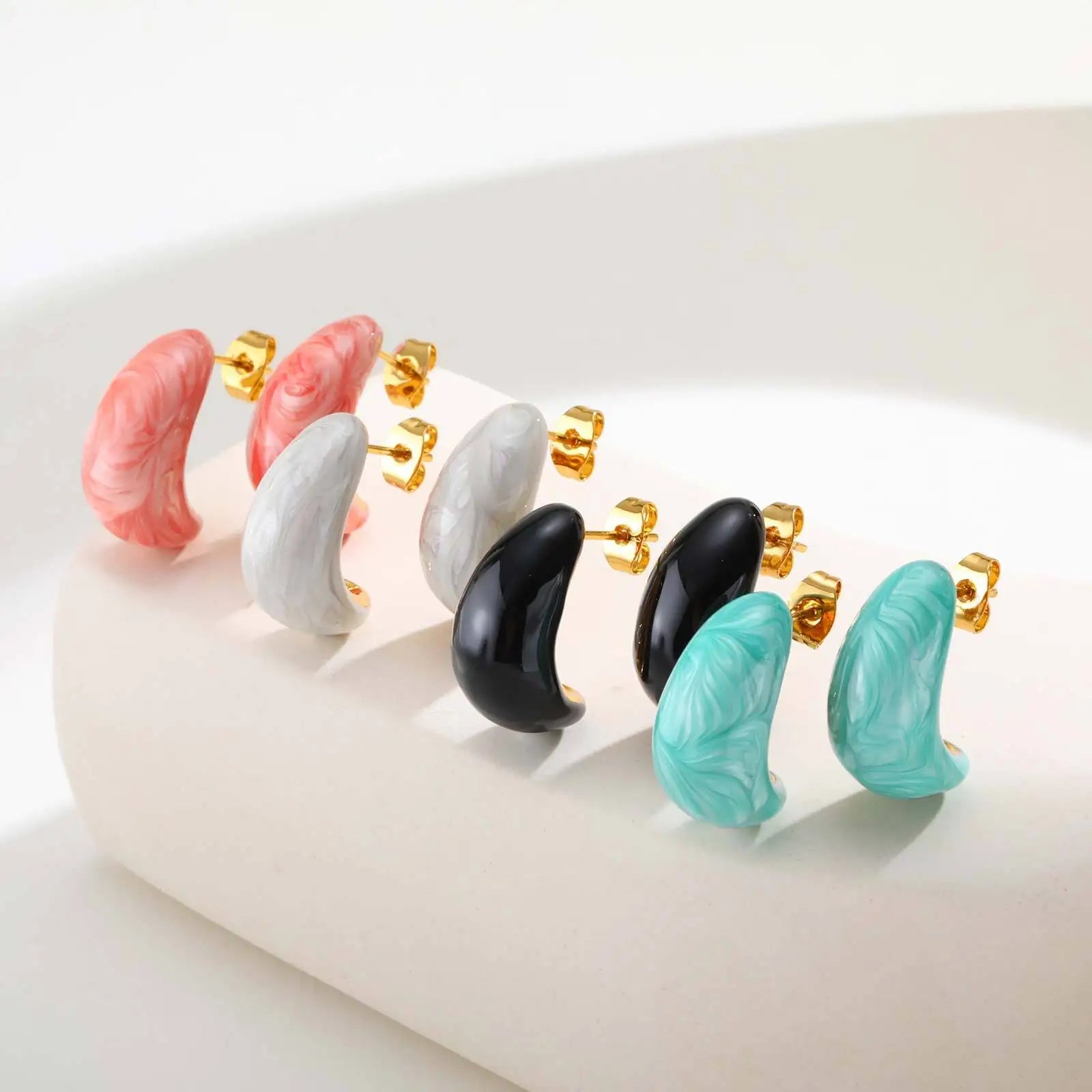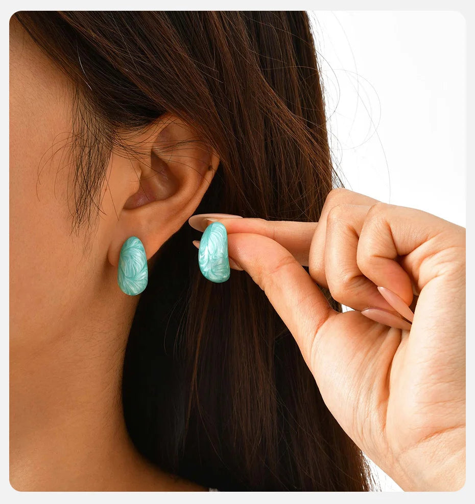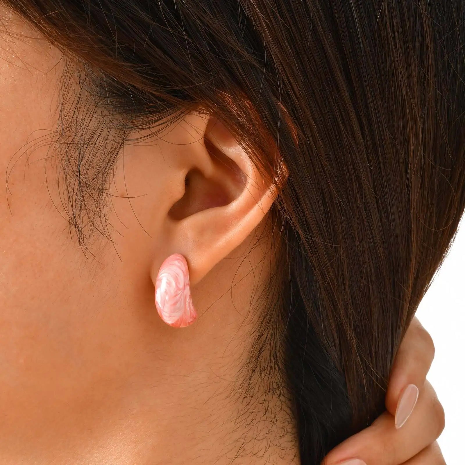 Farbe und Kurve: Die trendigen C-förmigen Ohrstecker aus Acryl.