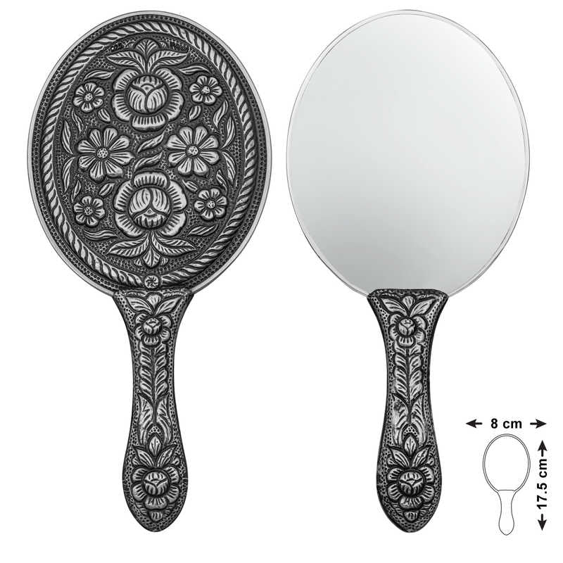 Silberner Handspiegel mit Gänseblümchen- und Rosenmotiv