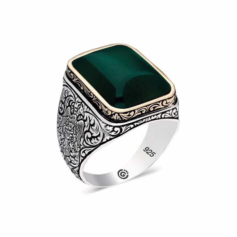 Quadratischer Herren-Silberring mit dunkelgrünem Achat
