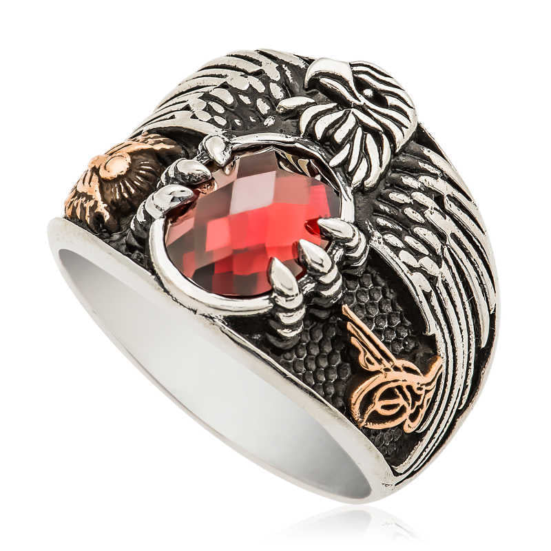 Der Adler, bekannt als König der Vögel und zum Kämpfen auf die Erde herabgestiegen, gilt als besonders kriegerisch und kraftvoll, weshalb er zum Symbol vieler Nationen geworden ist. Inspiriert von dieser tiefen Bedeutung können Sie sich selbst oder Ihren Lieben diesen Adler-Herrenring zum Geburtstag, zum Vatertag oder zu besonderen Anlässen schenken. Dieser stilvolle Herrenring ist aus 925er Sterlingsilber gefertigt. Er verfügt über eine oxidierte Oberfläche. Ringe mit einer oxidierten Beschichtung behalten lange ihren Glanz. Wie alle Herrenringe ist auch dieses silberne Adler-Herrenringmodell handgefertigt. Aufgrund von Silber und Edelsteinen kann das angegebene durchschnittliche Produktgewicht um ±10 % abweichen.