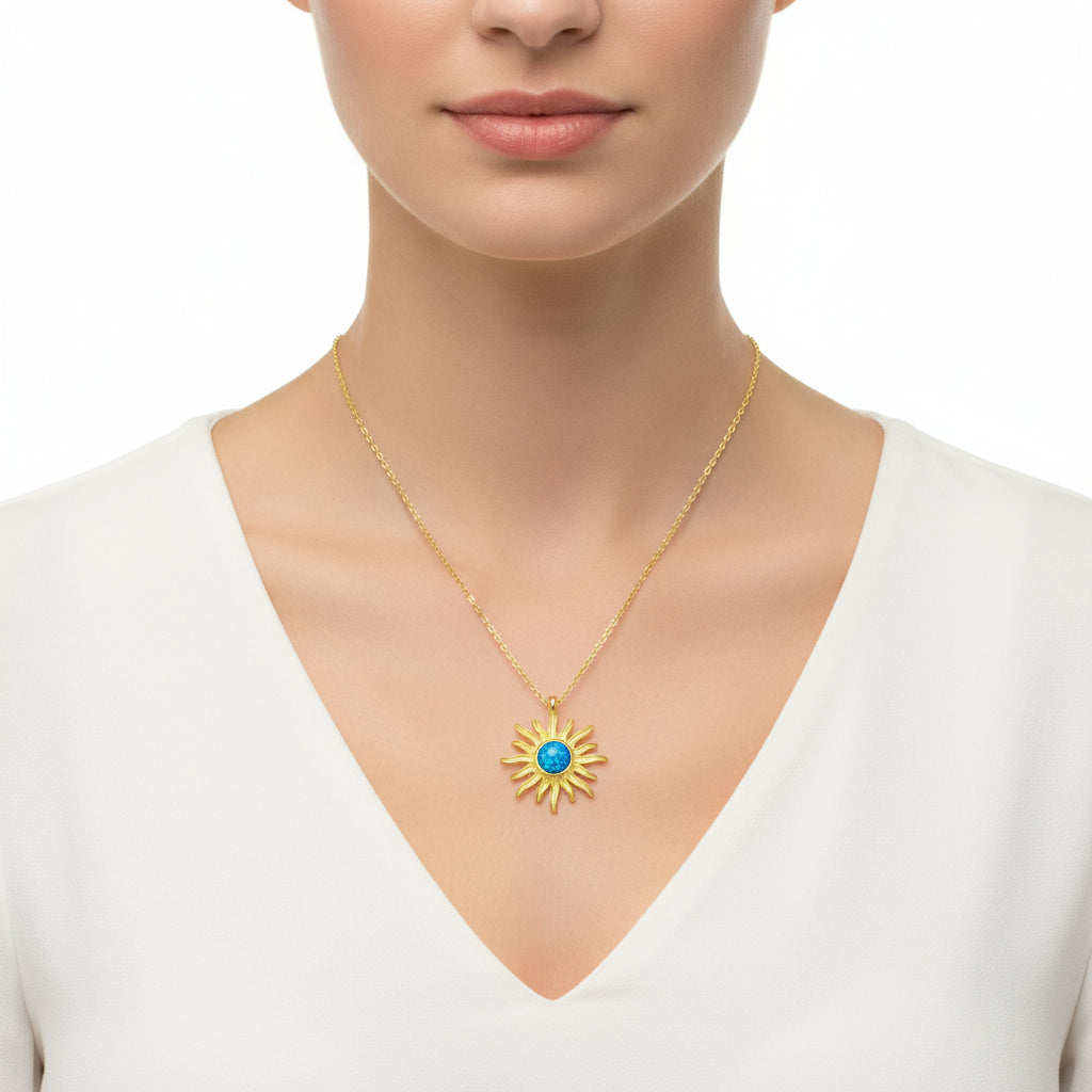Vergoldete Damen-Silberkette mit blauem Opalstein und Sonne