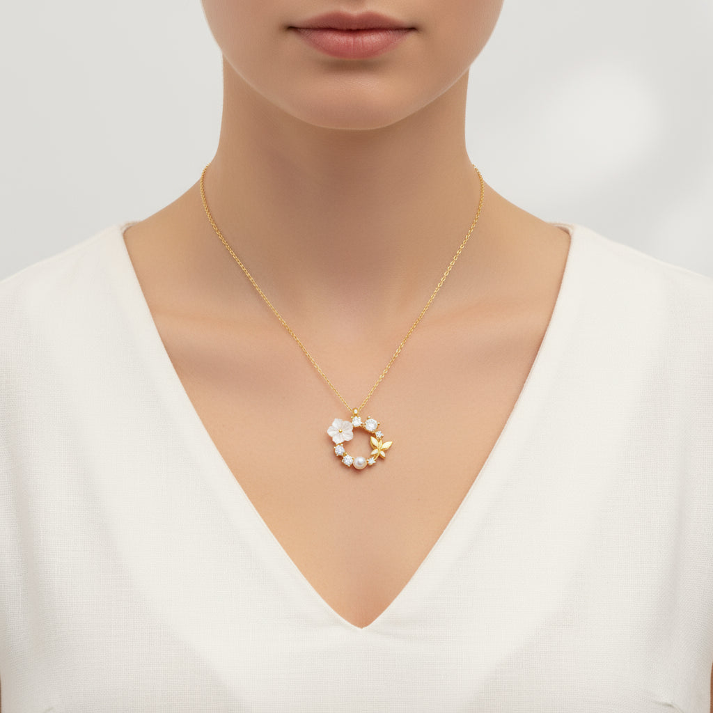 Vergoldete Magnolienblüte Schmetterling Damen Silber Halskette