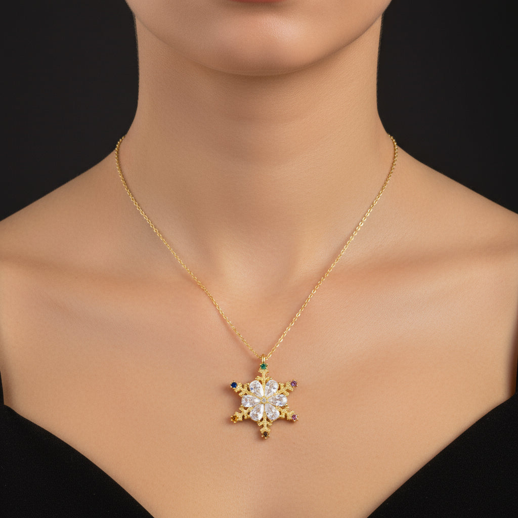 Vergoldeter Stein Schneeflocke Damen Silber Anhänger