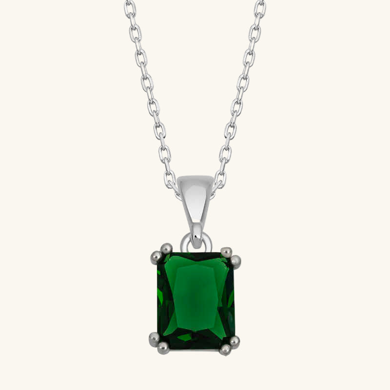 Sie werden es lieben, diese Halskette mit ihrem funkelnden Stein zu tragen, der an Sterne erinnert – perfekt für den Alltag, besondere Tage und Abende. Eine zeitlose Silberkette mit grünem Kristallquadratstein erwartet Sie, die alle Frauen anspricht, die einen eleganten Look erzielen möchten. Das Halskettenmodell mit grünem Quadratstein ist aus 925er Sterlingsilber gefertigt. Das Silber ist rhodiniert, wodurch die Silberkettenmodelle ihren Glanz lange bewahren und die Oxidation verzögert wird. Der Stein darauf ist ein Zirkon. Die durchschnittliche Kettenlänge beträgt 45 cm. Alle unsere Produkte sind handgefertigt. Aufgrund von Silber und Edelsteinen kann das angegebene durchschnittliche Produktgewicht um ±10 % abweichen.