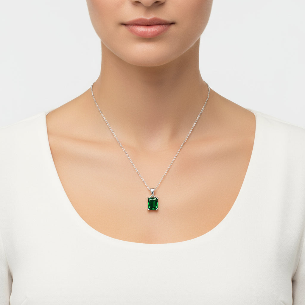 Grüne Zirkon Baguette Stein Damen Silber Halskette
