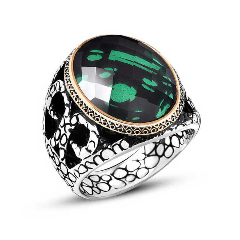 In der Natur vorkommende Steine kommen in den unterschiedlichsten Arten vor. Einige dieser Steine sind auch als Heilsteine bekannt. Ein solcher Stein, dem heilende Kräfte nachgesagt werden, ist der Achat. Bei Kontakt mit dem Körper spendet er Wärme. Dank dieser Eigenschaft hilft er, Schmerzen und Verspannungen im Körper zu lindern. Achat ist sehr wichtig bei Hautkrankheiten. Dieser Ring mit einem in Silber gefassten Achatstein ist ein Accessoire mit unzähligen gesundheitlichen Vorteilen, das Sie zu jeder Tageszeit tragen können. Sie können diesen Ring sich selbst oder Ihren Lieben zum Geburtstag, zum Vatertag oder zu besonderen Anlässen schenken. Der Herrenring mit Zirkonstein ist aus 925er Sterlingsilber gefertigt. Das Silber wurde oxidiert. Oxidierte silberne Herrenringe behalten lange ihren Glanz. Wie alle Herrenringe ist auch dieser Silberring mit grünem Zirkonstein handgefertigt. Aufgrund von Silber und Edelsteinen kann das angegebene Durchschnittsgewicht um ±10 % abweichen.