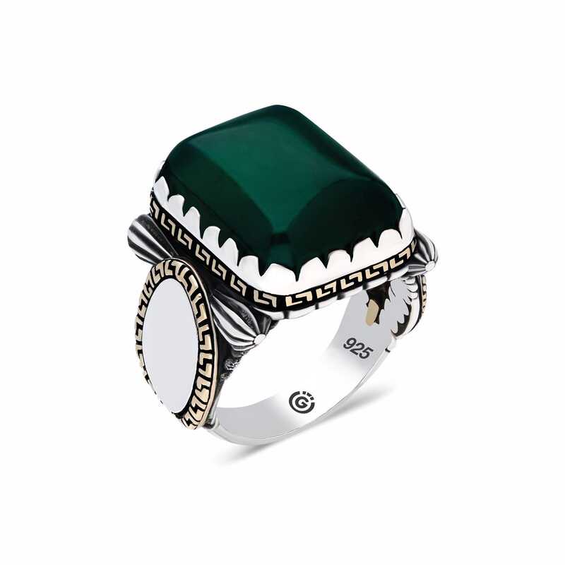 Grüner Zirkoniastein-Quadrat-Herren-Silberring