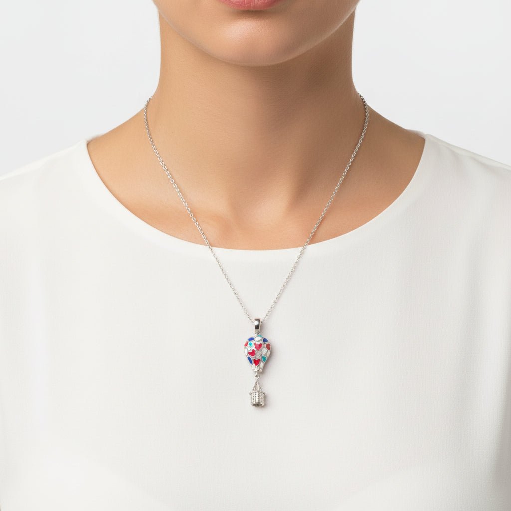 Diese Silberkette, die diejenigen darstellt, die vor Glück auf einem fliegenden Ballon schweben, ist eine Geschenkoption, die Sie für Ihre Lieben und diejenigen auswählen können, mit denen Sie Freude teilen möchten. Sie besteht aus 925er Sterlingsilber mit Rhodiumbeschichtung und ist mit Farben verziert und gestaltet. Machen Sie Ihren Lieben eine Freude, indem Sie ihnen diese silberne Damenkette mit Herzballon „Cappadocia“ schenken, die junge Verliebte und alle, die sich im Herzen jung fühlen, lieben wird. Die Silberkette hat eine durchschnittliche Länge von 45 cm. Alle unsere Produkte sind handgefertigt, und aufgrund der Edelsteine kann das Produktgewicht um ±10 % variieren.