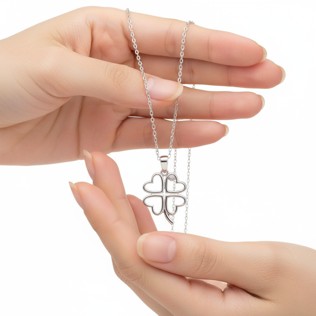 Herz vierblättriges Kleeblatt Damen Silber Halskette