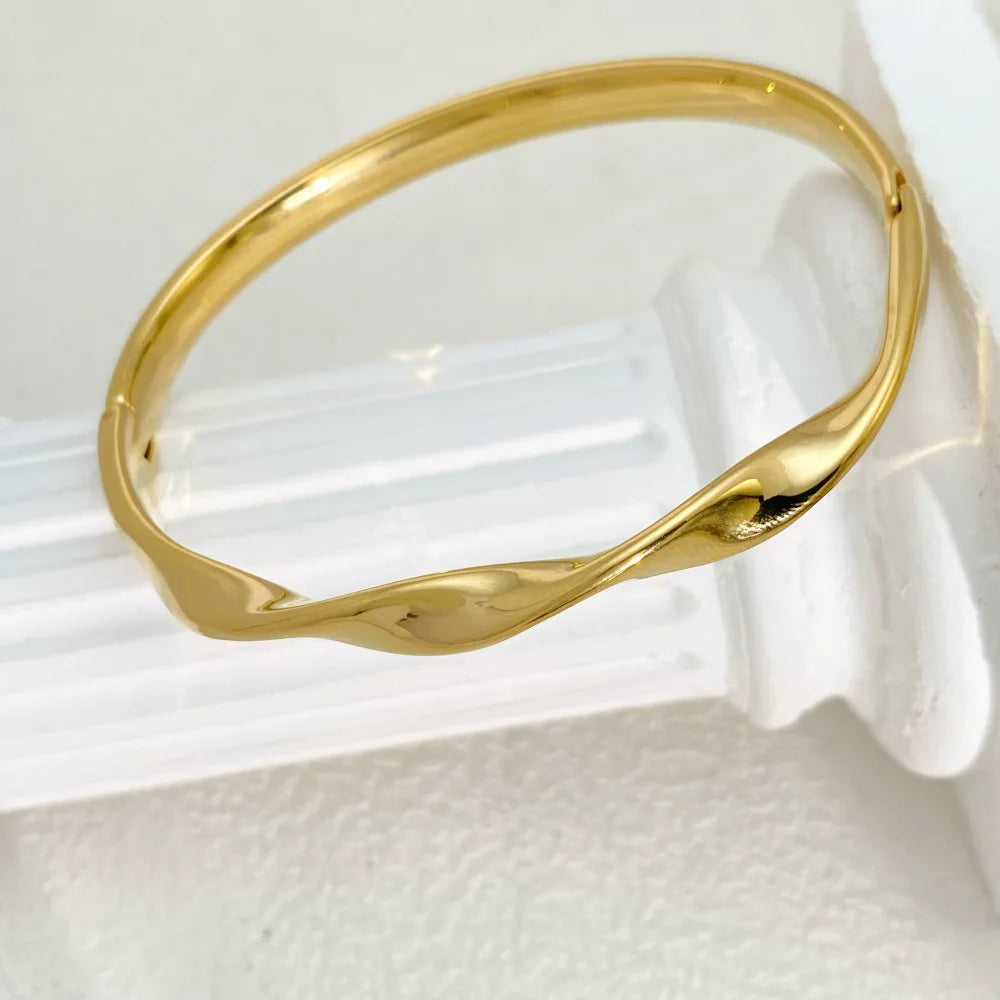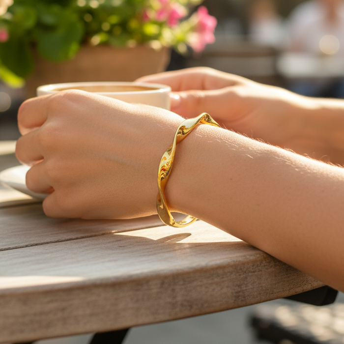 Erweitern Sie Ihre Accessoire-Auswahl mit diesem atemberaubenden Irregular Twist Cuff Armreif , einem modernen und zeitlosen Schmuckstück. Im Gegensatz zu herkömmlichen symmetrischen Designs erzeugt der Organic Twist eine wunderschöne, fließende Textur, die dem Armband einen einzigartigen, handgefertigten Look verleiht. Dieses markante und zugleich raffinierte Design ist das perfekte Statement für Partys, das Büro oder den Alltag.