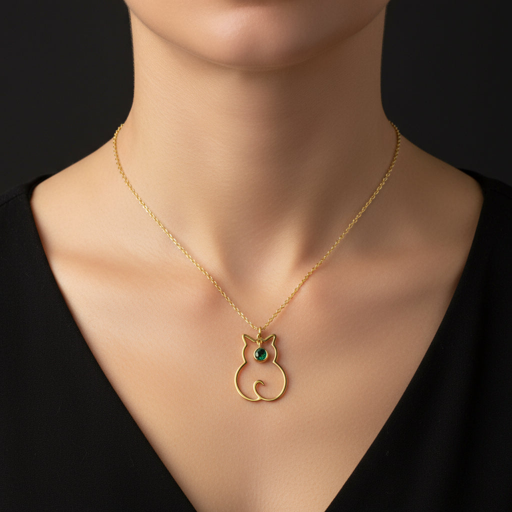 Mai Birthstone Katze Damen Silber Halskette