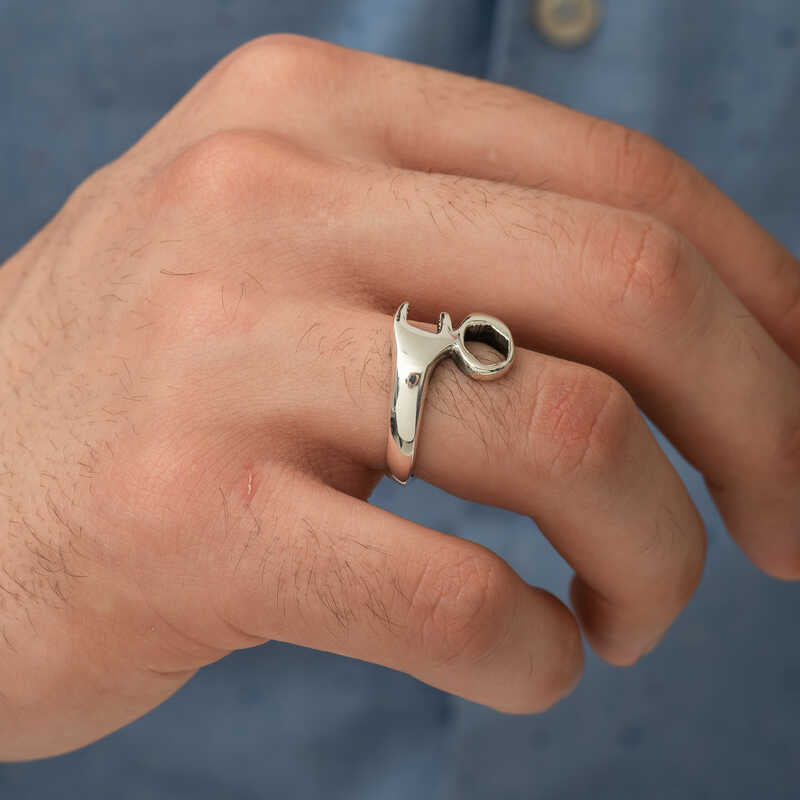 In unserem täglichen Leben sind die Werkzeuge, die wir verwenden, wie Schlüssel, die uns Fähigkeiten eröffnen, die ohne sie unmöglich wären. Der Schraubenschlüssel ist ein perfektes Beispiel, denn ohne ihn wären Lösungen für die meisten Produkte der Menschheit nicht möglich. Der Schraubenschlüssel wird mit Kraft, solider Intelligenz und dem Wunsch assoziiert, Kaputtes zu reparieren. Vor diesem Hintergrund verkörpert der Schraubenschlüsselring auch die Bedeutungen, die Sie anderen vermitteln möchten. Wenn Sie sich vom Gewöhnlichen abheben und Ihren Unterschied deutlich machen möchten, ist der Mechaniker-Schraubenschlüsselring genau das Richtige für Sie ... Wie alle Silberprodukte ist auch der silberne Mechaniker-Schraubenschlüsselring für Herren vollständig handgefertigt. Dieser prächtige Ring ist aus 925er Sterlingsilber gefertigt. Das Silber ist rhodiniert. Aufgrund von Silber und Edelsteinen kann das angegebene durchschnittliche Produktgewicht um ±10 % abweichen.