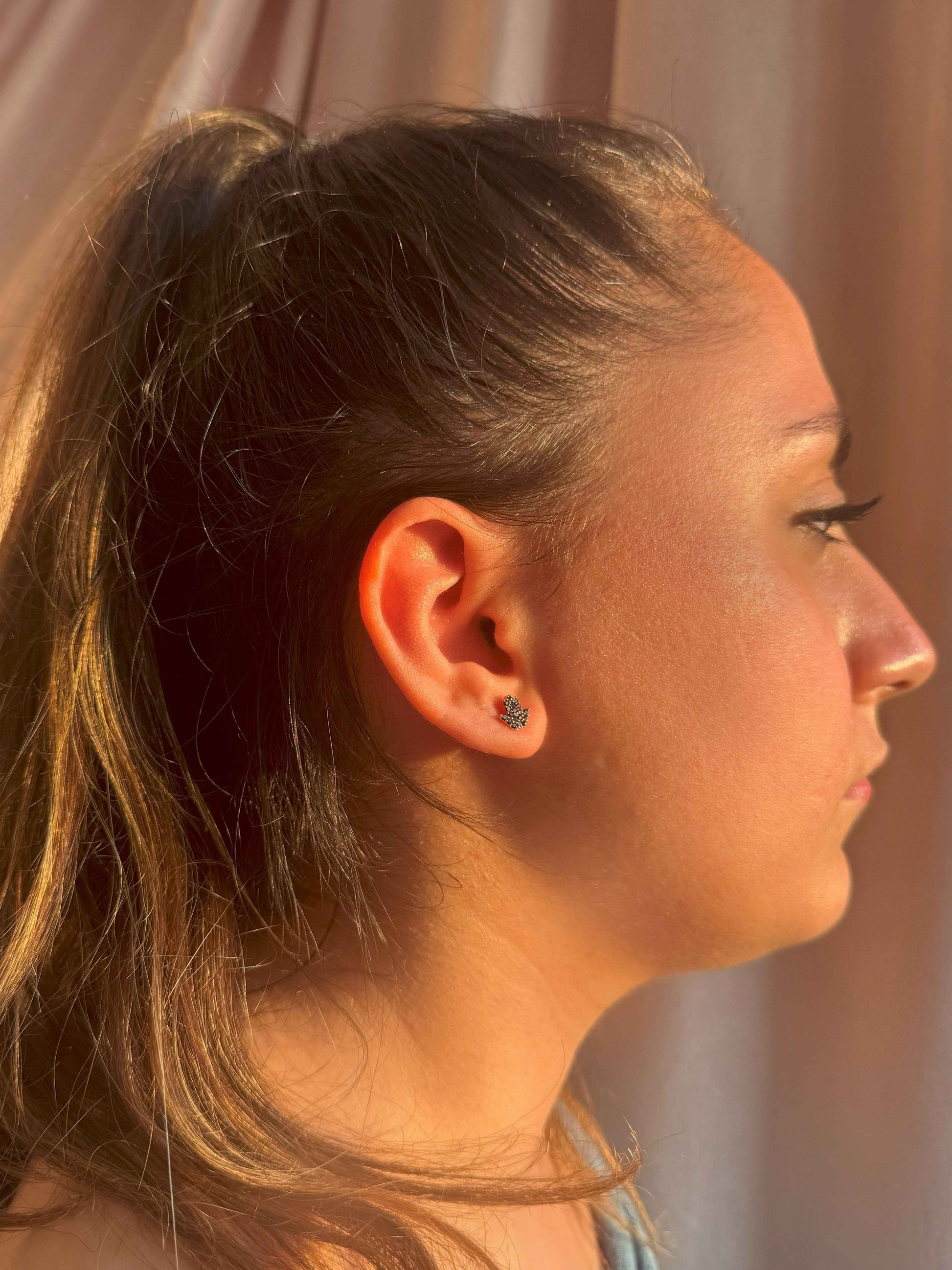 Mini-Ohrringe mit schwarzer Hand, Silber