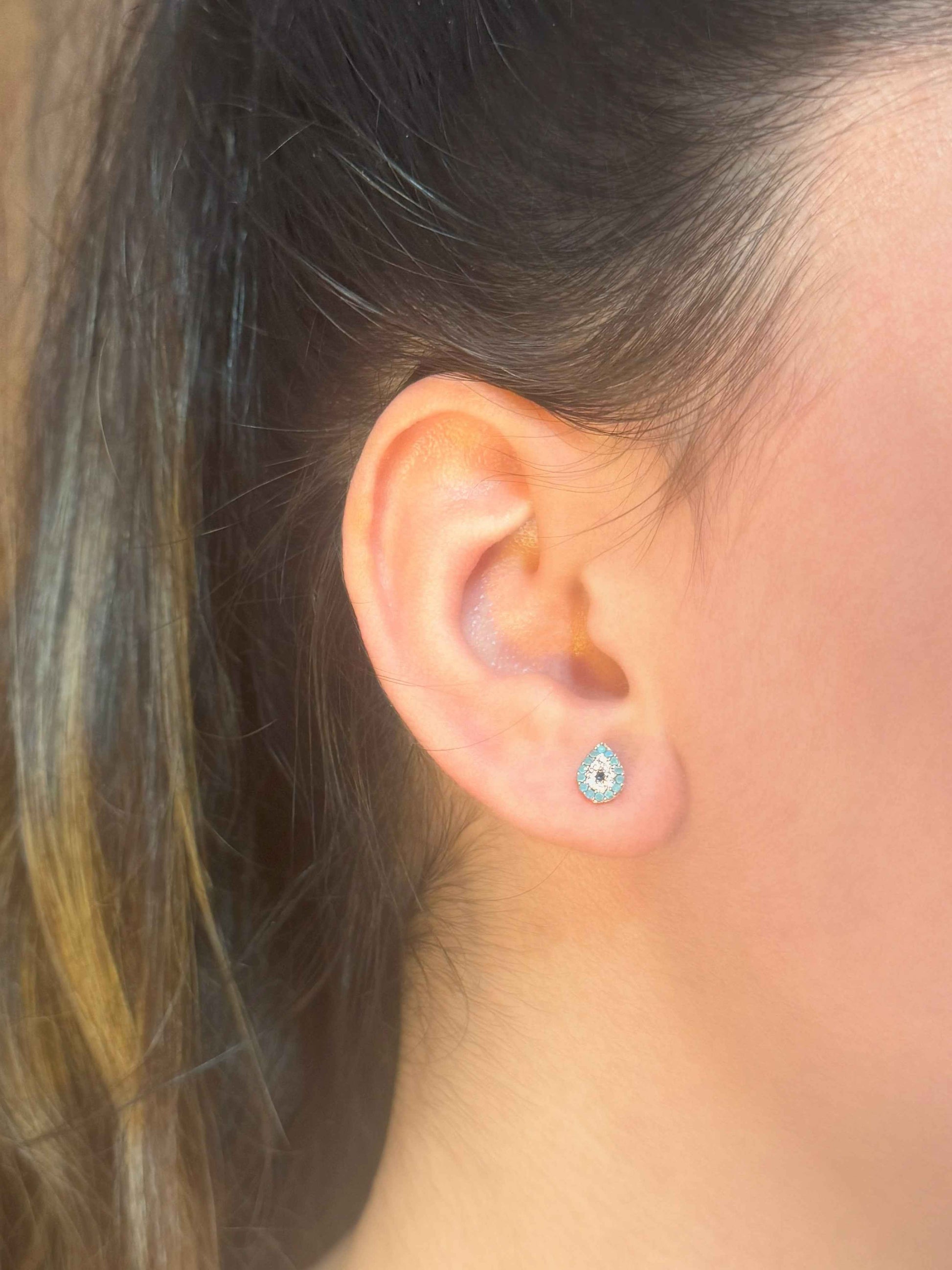 Mini Türkis Weiß Tropfen Silber Ohrringe