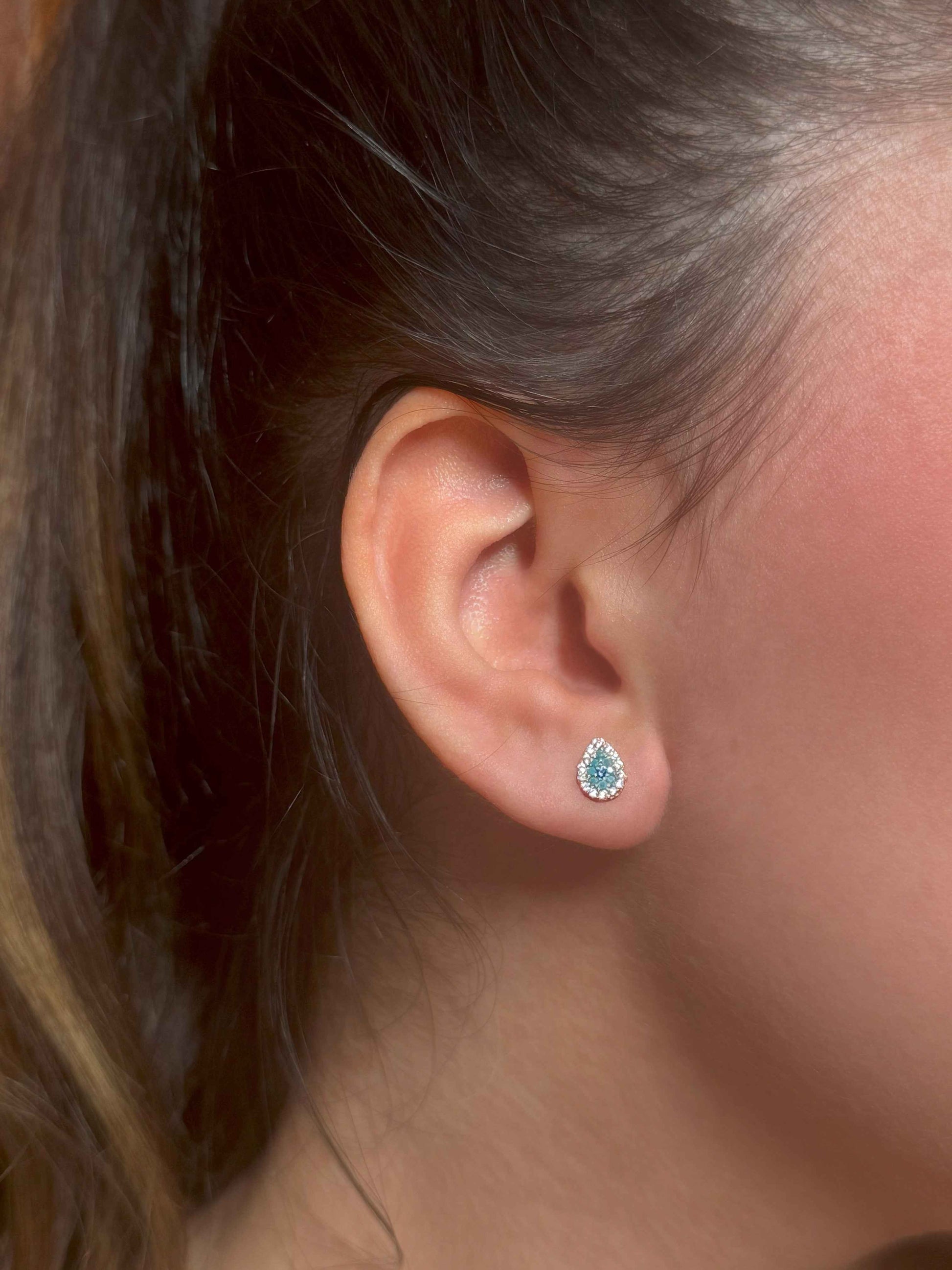 Mini-Ohrringe in Tropfenform, Weiß und Türkis, Silber