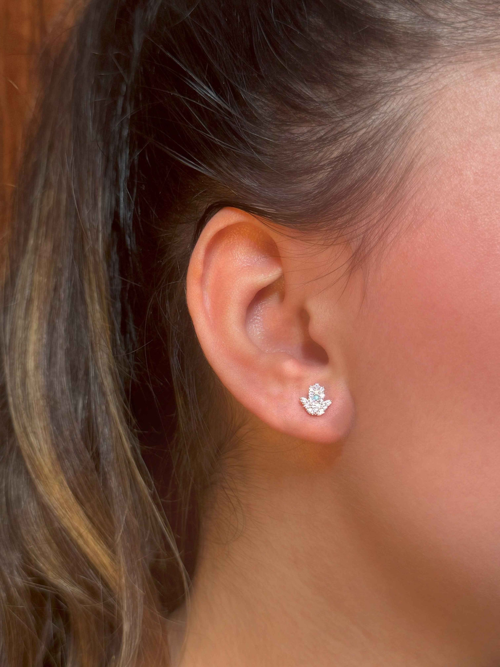 Mini-Ohrringe mit weißen und türkisfarbenen Händen in Silber