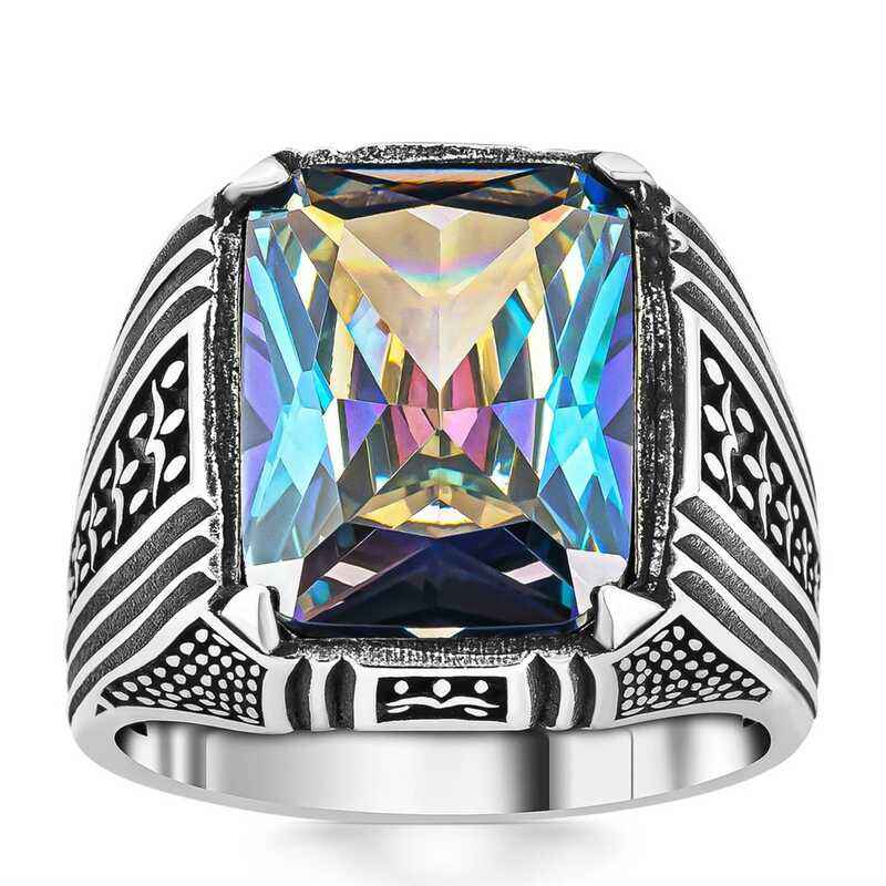 Topas ist dank seiner schillernden, brillanten, glasartigen Erscheinung einer der seltenen Edelsteine. Aus diesem Grund kann farbloser Topas mit Diamant verwechselt werden. Es gibt ihn in verschiedenen Farben, z. B. farblos, weiß, grau, hellblau, gelb, rot usw. Mystischer Topas ist besonders wirksam bei Menschen mit den Sternzeichen Löwe, Jungfrau, Skorpion, Schütze und Fische. Zu seinen energetischen Vorteilen gehört seine Fähigkeit, Stress abzubauen. Er vermittelt ein Gefühl von Ruhe und Frieden. Er muntert Sie auf. Er sorgt für spirituelles Gleichgewicht, indem er die unterschiedlichen Auswirkungen der Mondphasen auf eine Person reduziert. Er unterstützt die Meditation. Er lässt universelle Energie in den Körper fließen. Er bietet Entspannung und Trost. Sie können diesen bedeutungsvollen, funkelnden quadratischen Herrenring aus mystischem Topas auch jemandem schenken, den Sie lieben und schätzen. Alle unsere Produkte sind handgefertigt und aufgrund der Edelsteine kann das Produktgewicht um ±10 % variieren.