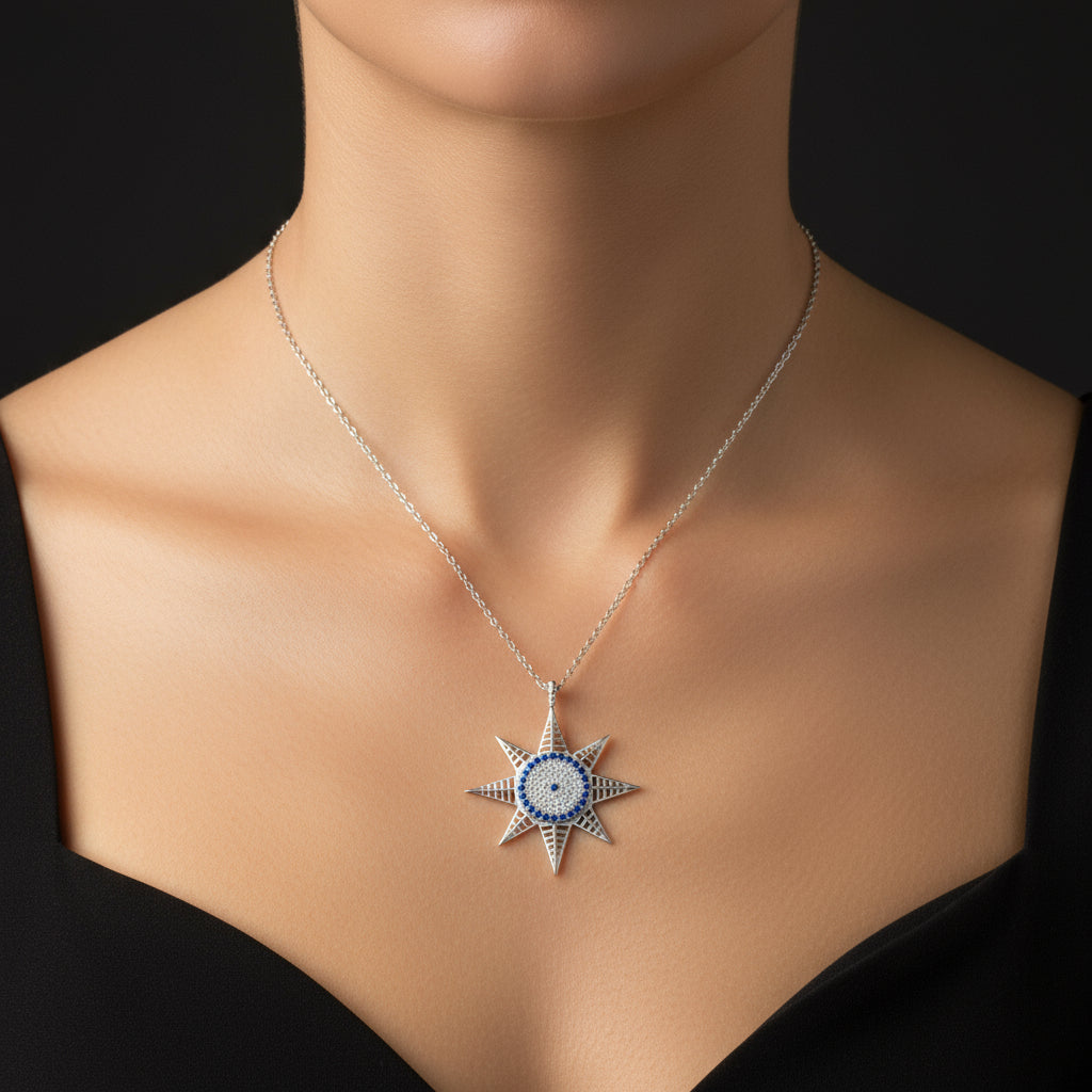 Nazar Evil Eye Polaris Stern Damen Silber Halskette