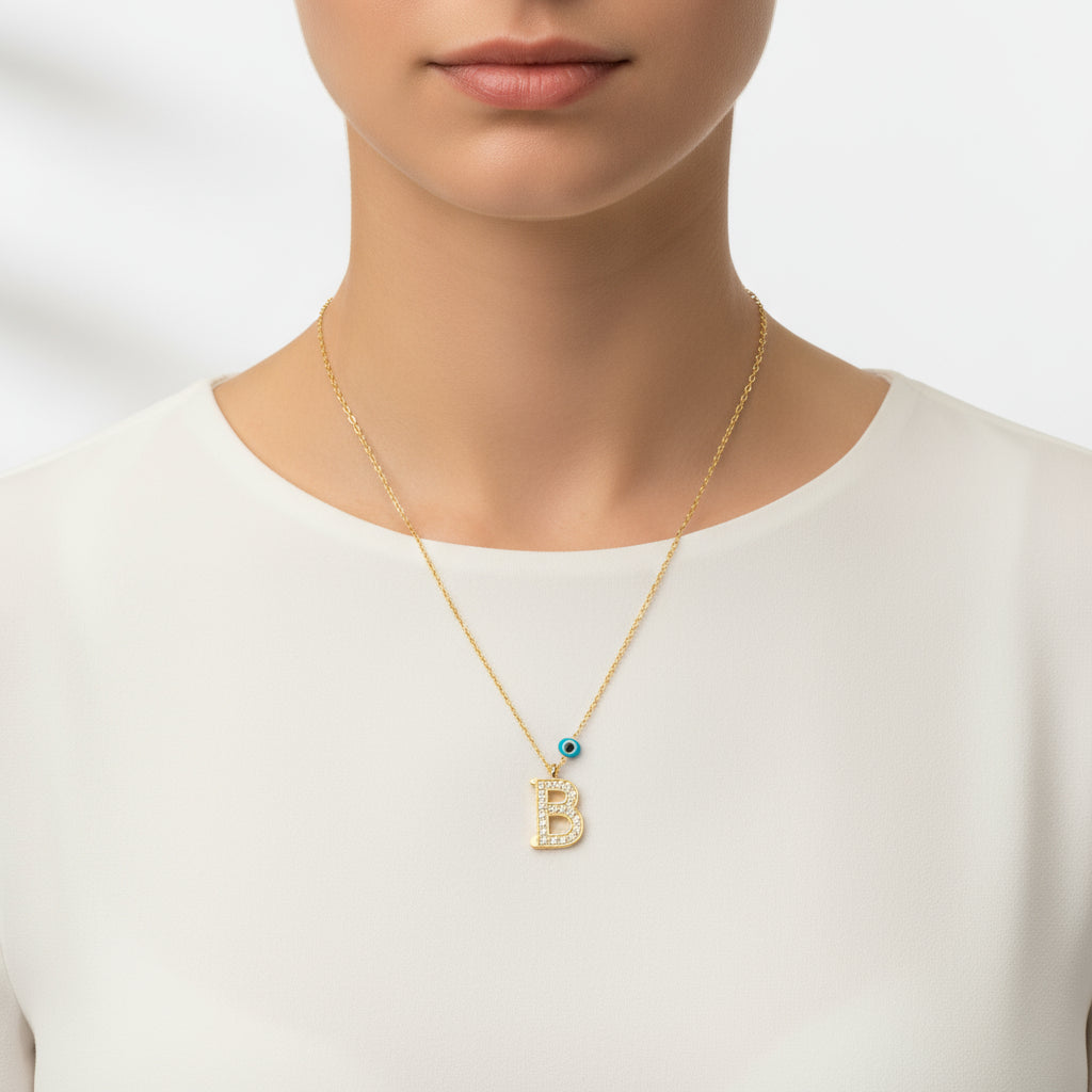 Mit silbernen Buchstabenketten bleiben Ihre Liebsten ganz nah beieinander ... Schmücken Sie den Hals Ihrer Liebsten mit Liebe mit diesem besonderen Kettenmodell – perfekt für junge Paare an besonderen Tagen. Diese silberne Buchstabenkette, die Sie und Ihre Liebsten gerne tragen werden, ist eines der bedeutungsvollsten Geschenke. Die Damen-Buchstabenkette mit dem bösen Blick ist aus 925er Sterlingsilber gefertigt. Das Silber ist vergoldet. Vergoldete Damen-Silberketten behalten lange ihren Glanz. Wie alle unsere Produkte ist auch die silberne Damen-Buchstabenkette handgefertigt. Aufgrund von Silber und Edelsteinen kann das angegebene durchschnittliche Produktgewicht um ±10 % abweichen.