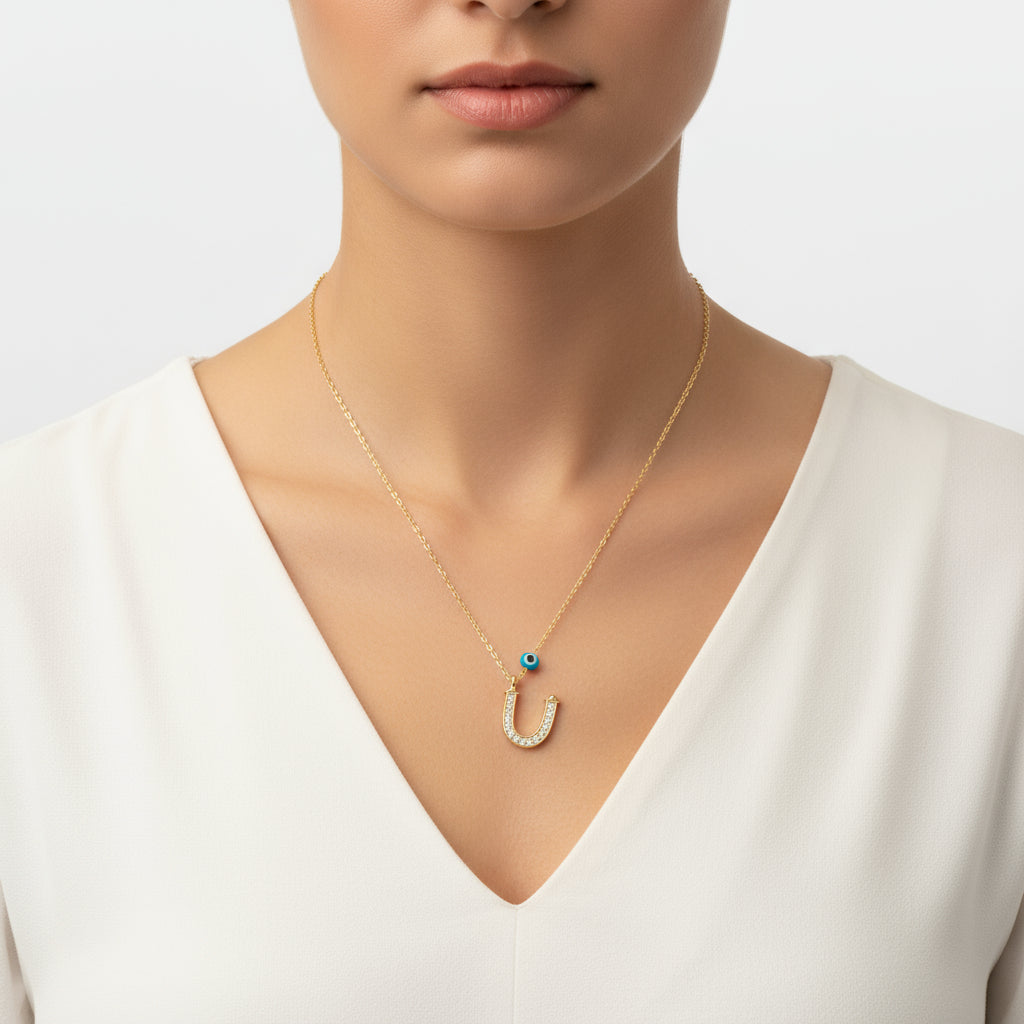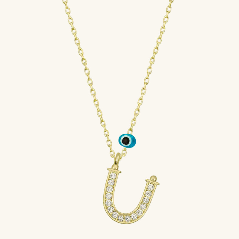 Nazar Damen-Silberkette mit vergoldetem Buchstaben U