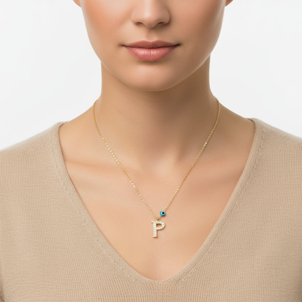 Nazar Damen-Silberkette mit vergoldetem P-Buchstaben