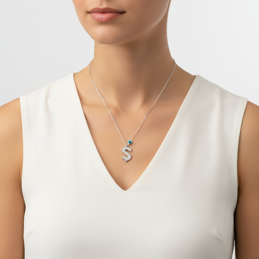 Nazar Rhodium Buchstabe Ş Damen Silber Anhänger