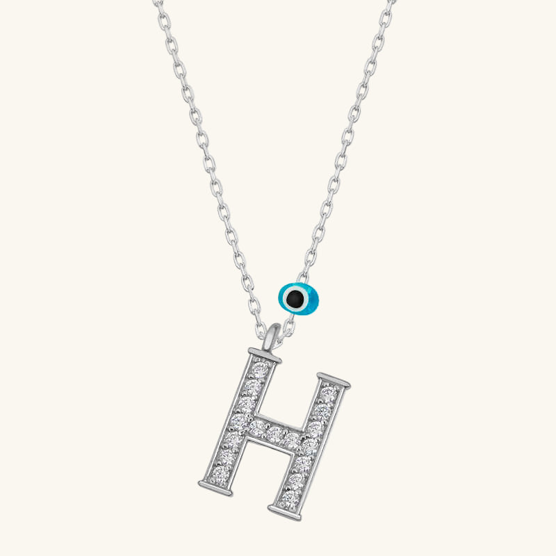 Nazar Rodyum Damen-Silberanhänger mit dem Buchstaben H