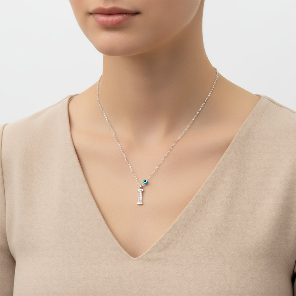 Nazar Rodyum İ Buchstabe Damen Silber Anhänger