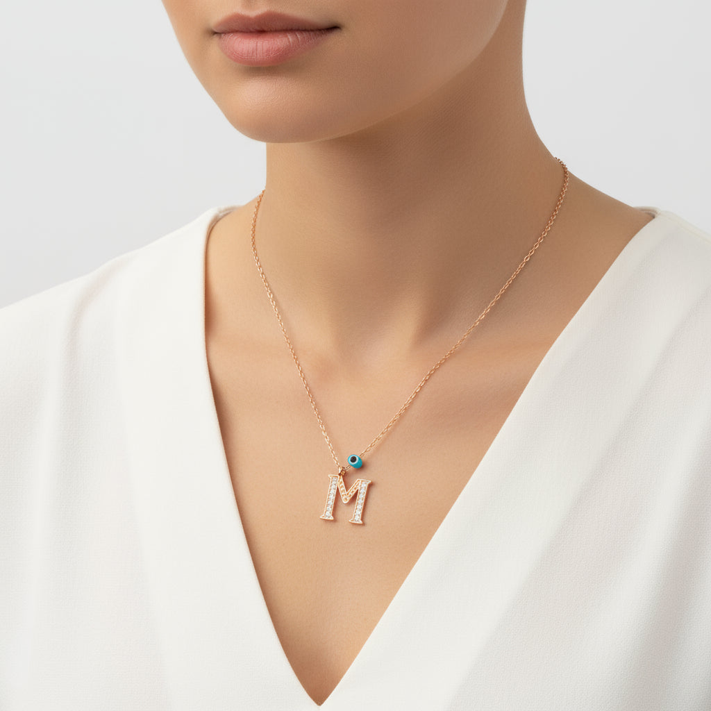 Nazar Rose Damen-Silberkette mit Buchstaben M