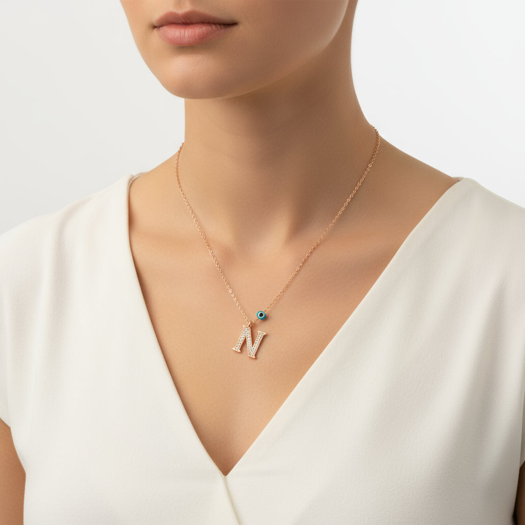 Nazar Rose Damen-Anhänger mit Buchstaben N, Silber