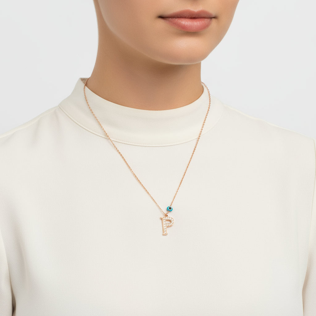 Nazar Rose Damen-Halskette mit Buchstaben P, Silber