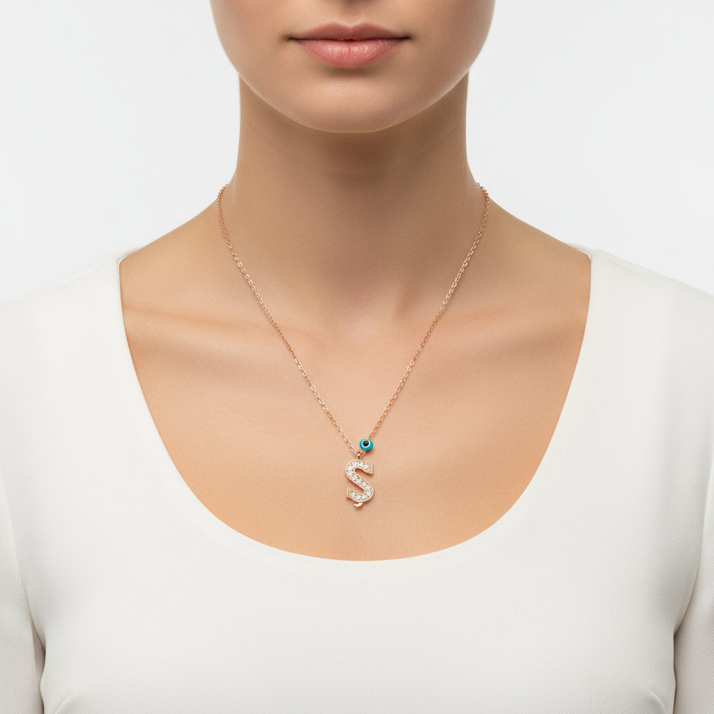 Nazar Rose Damen-Halskette mit Buchstaben „Ş“ aus Silber
